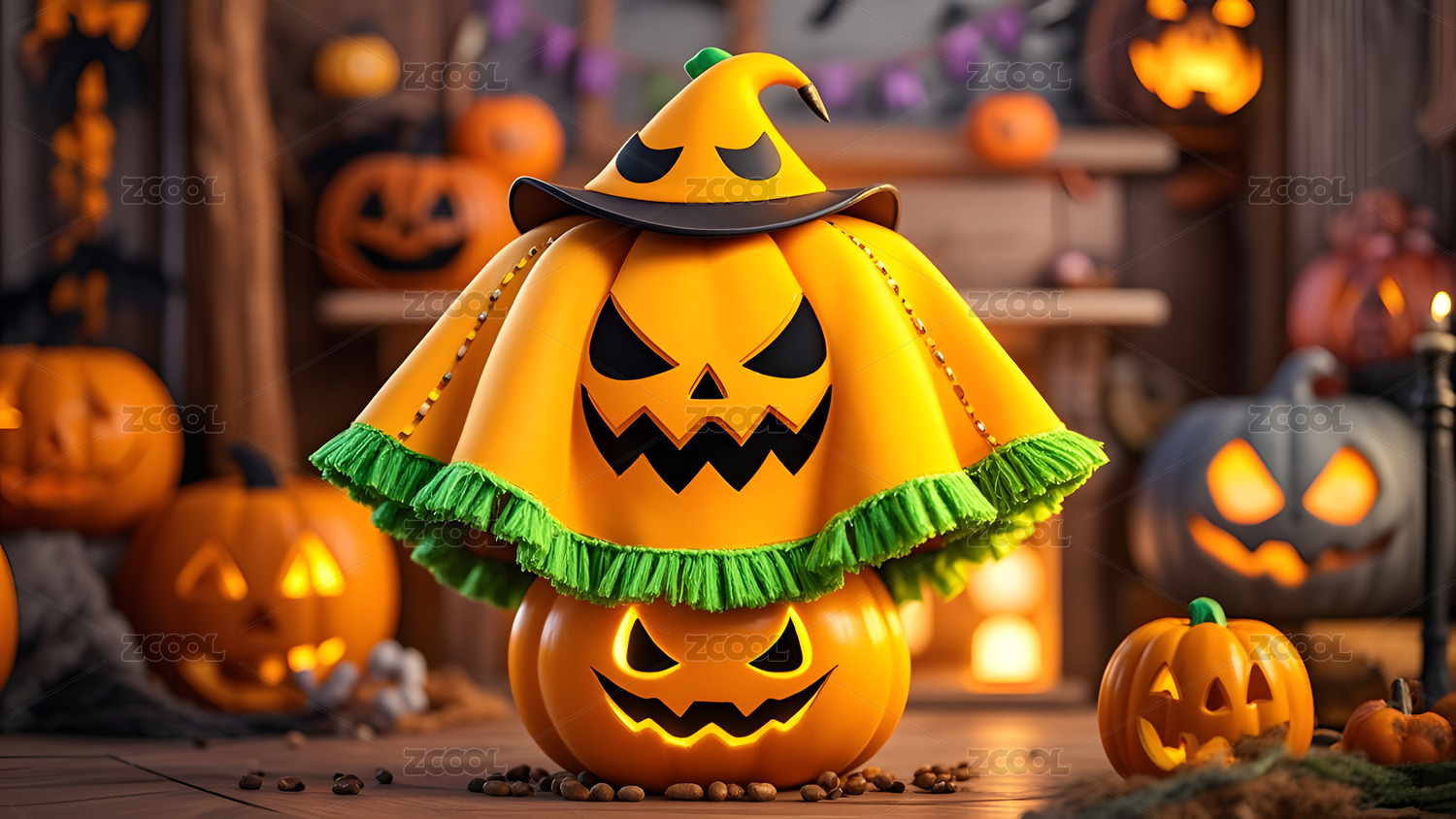 万圣节多层南瓜灯装饰场景充满节日氛围