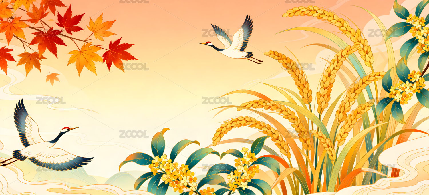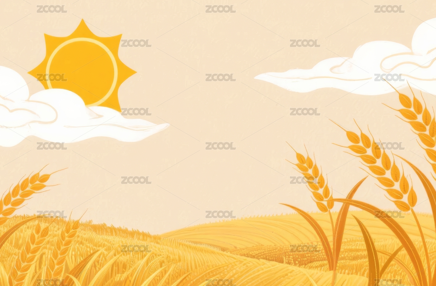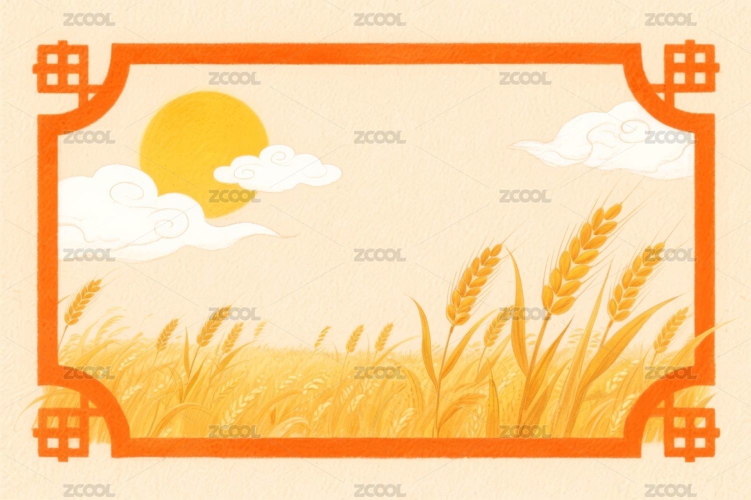 背景,秋天,秋季,插画,壁纸,祥云,夕阳,日落,丰收,麦田