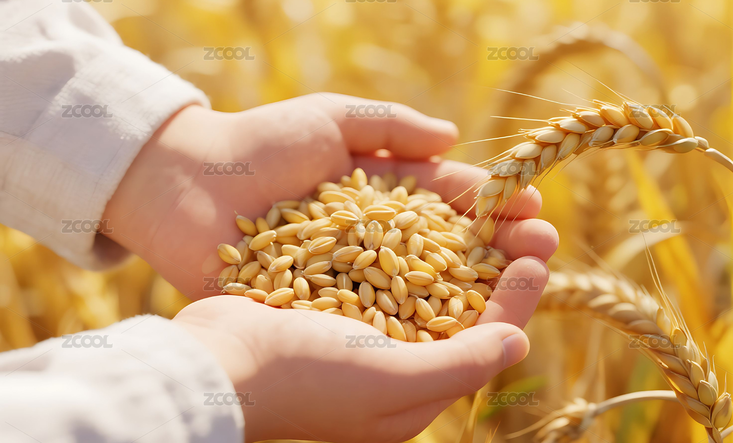 双手捧着金黄麦粒