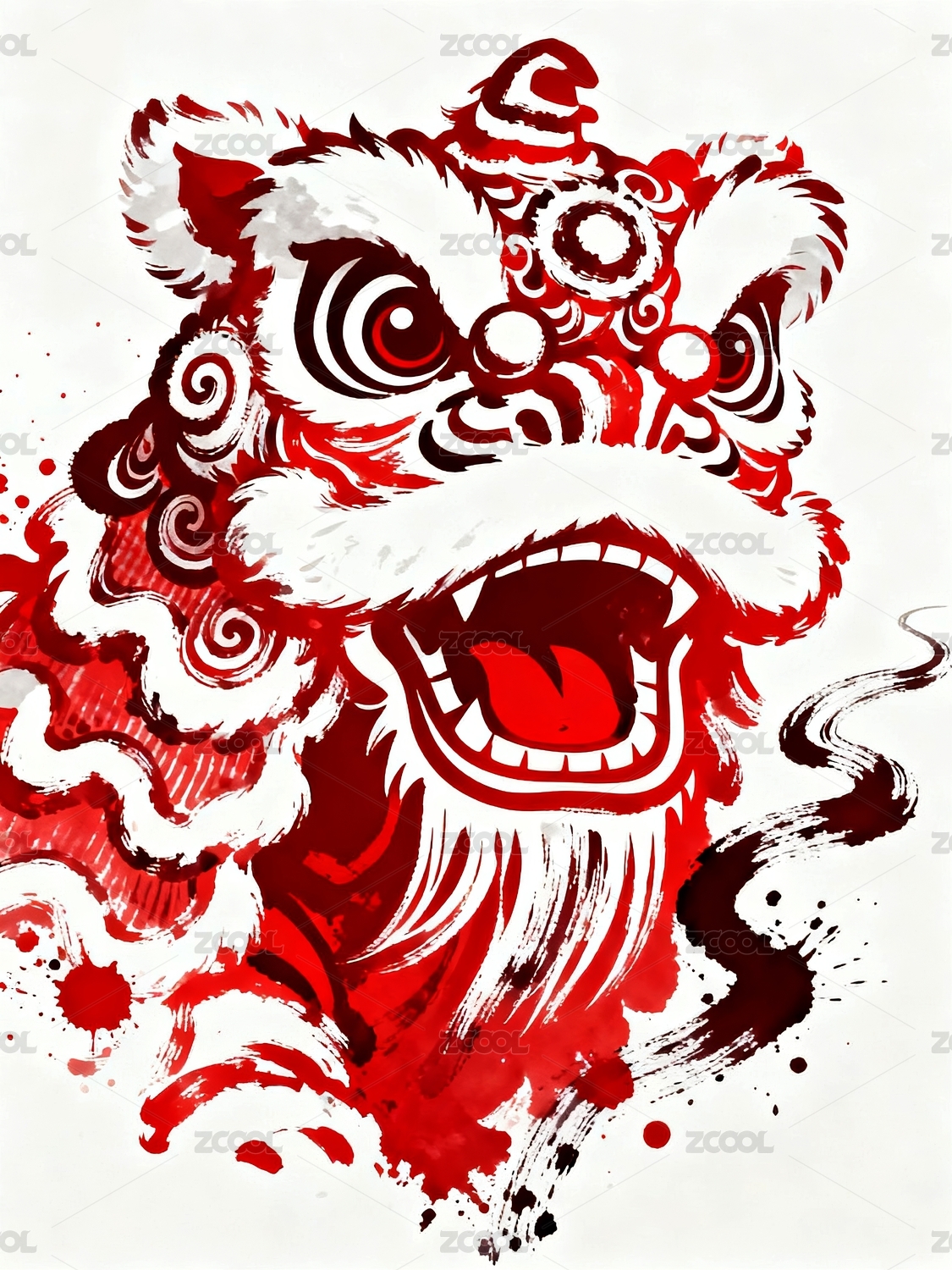 主视觉,商业,壁纸,舞狮,狮头,水墨,国风,装饰,传统,艺术