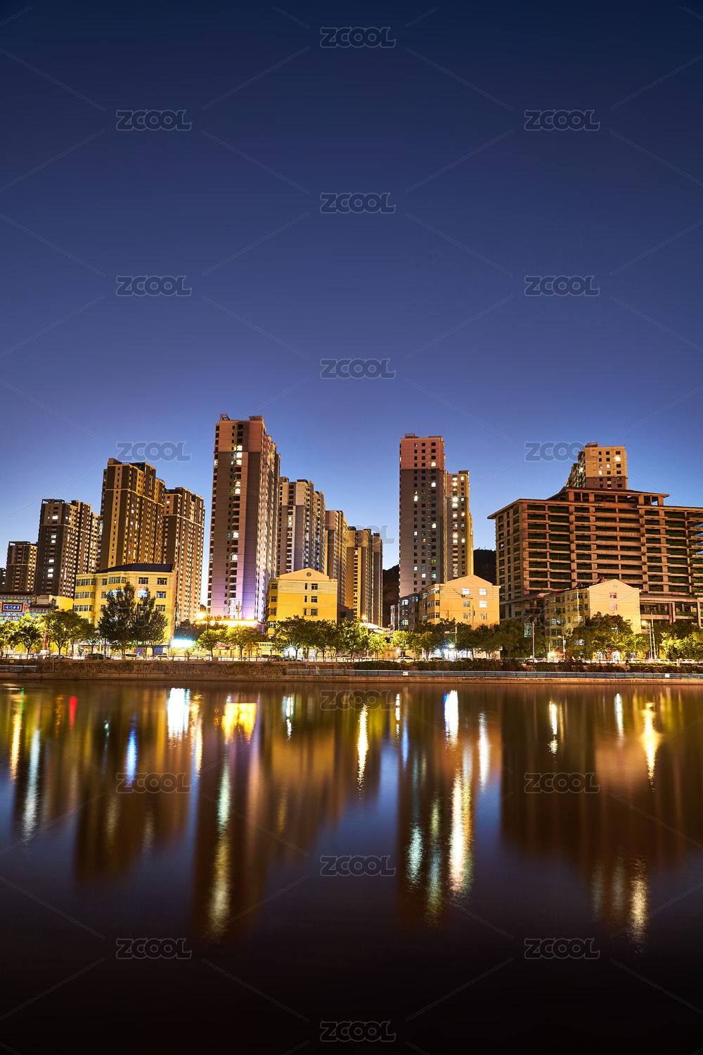 河北省张家口市大清河畔建筑夜景