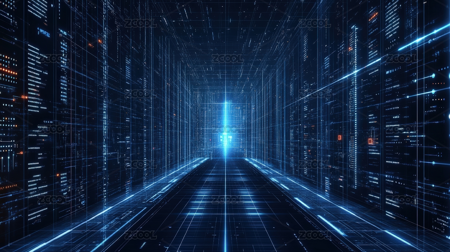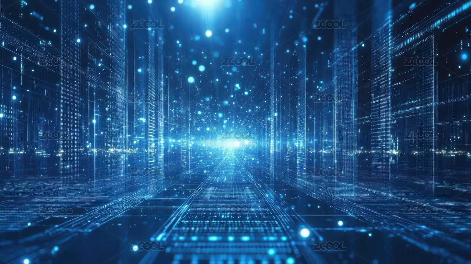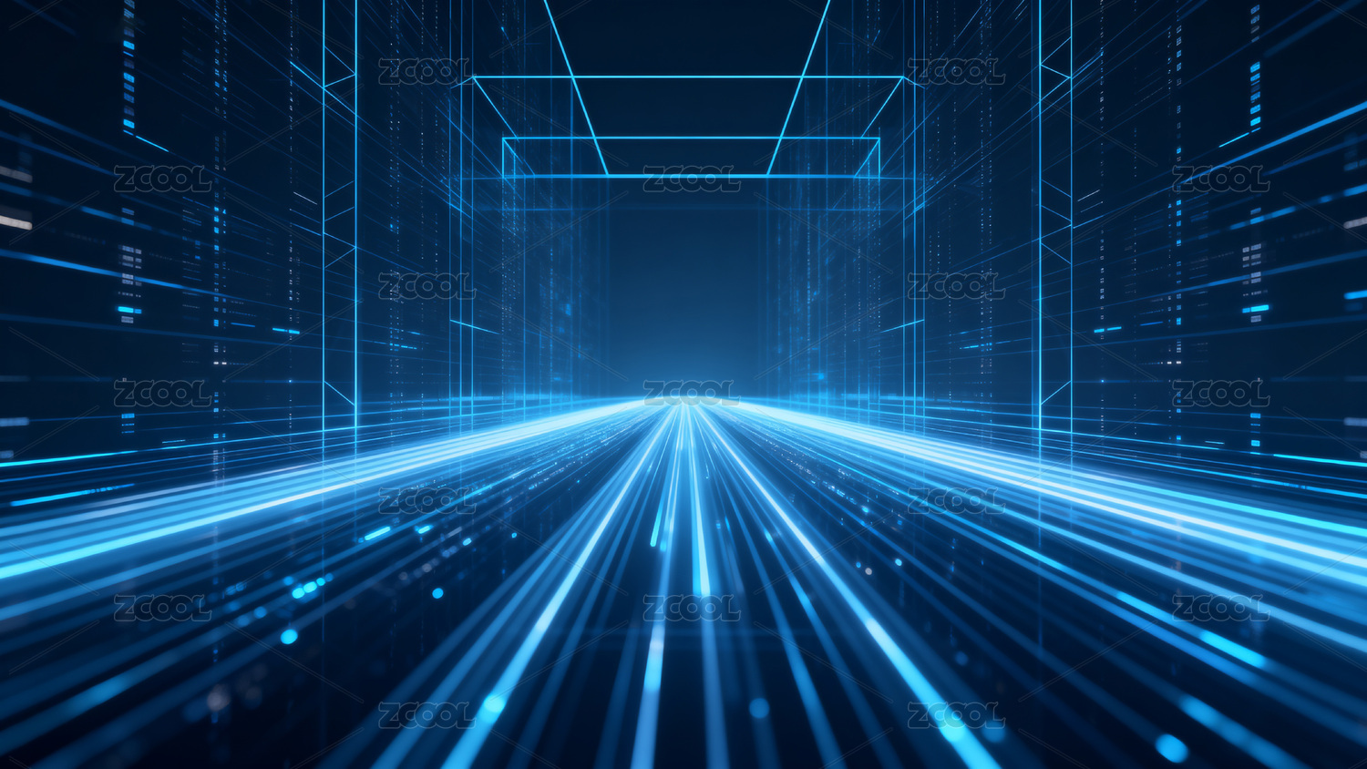 科技,展台,背景,三维,场景,蓝色,光束,轨迹,数据流,人工智能