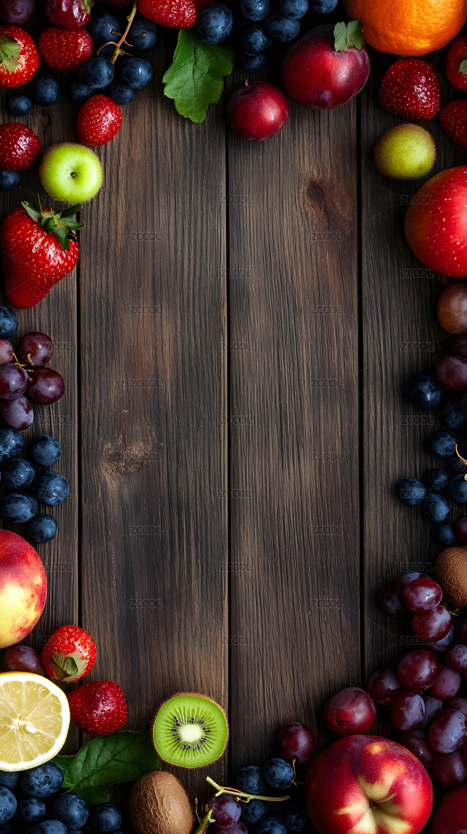 美味水果拼盘木质背景图