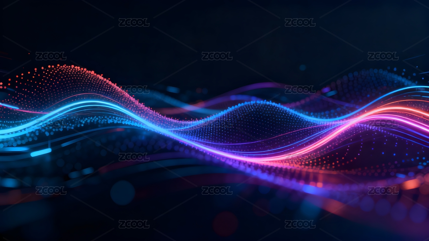 蓝橙粒子波纹深蓝背景