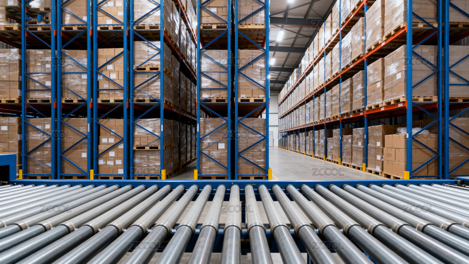 整齐,阳光,仓库,货架,金属,蓝色,橙色,托盘,高大,工业