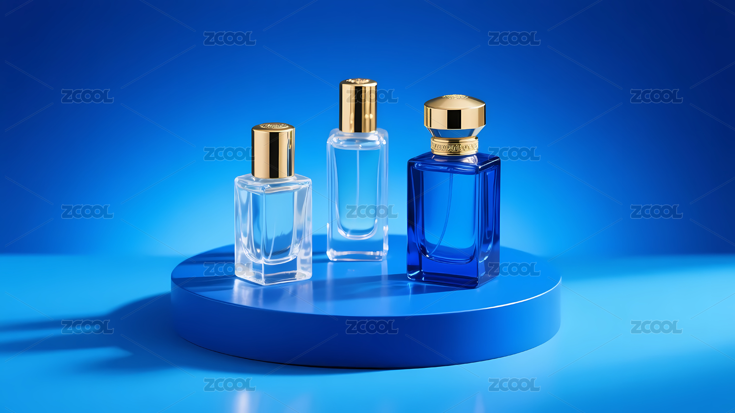 渐变玻璃金色瓶盖美妆护肤香氛产品展示插画