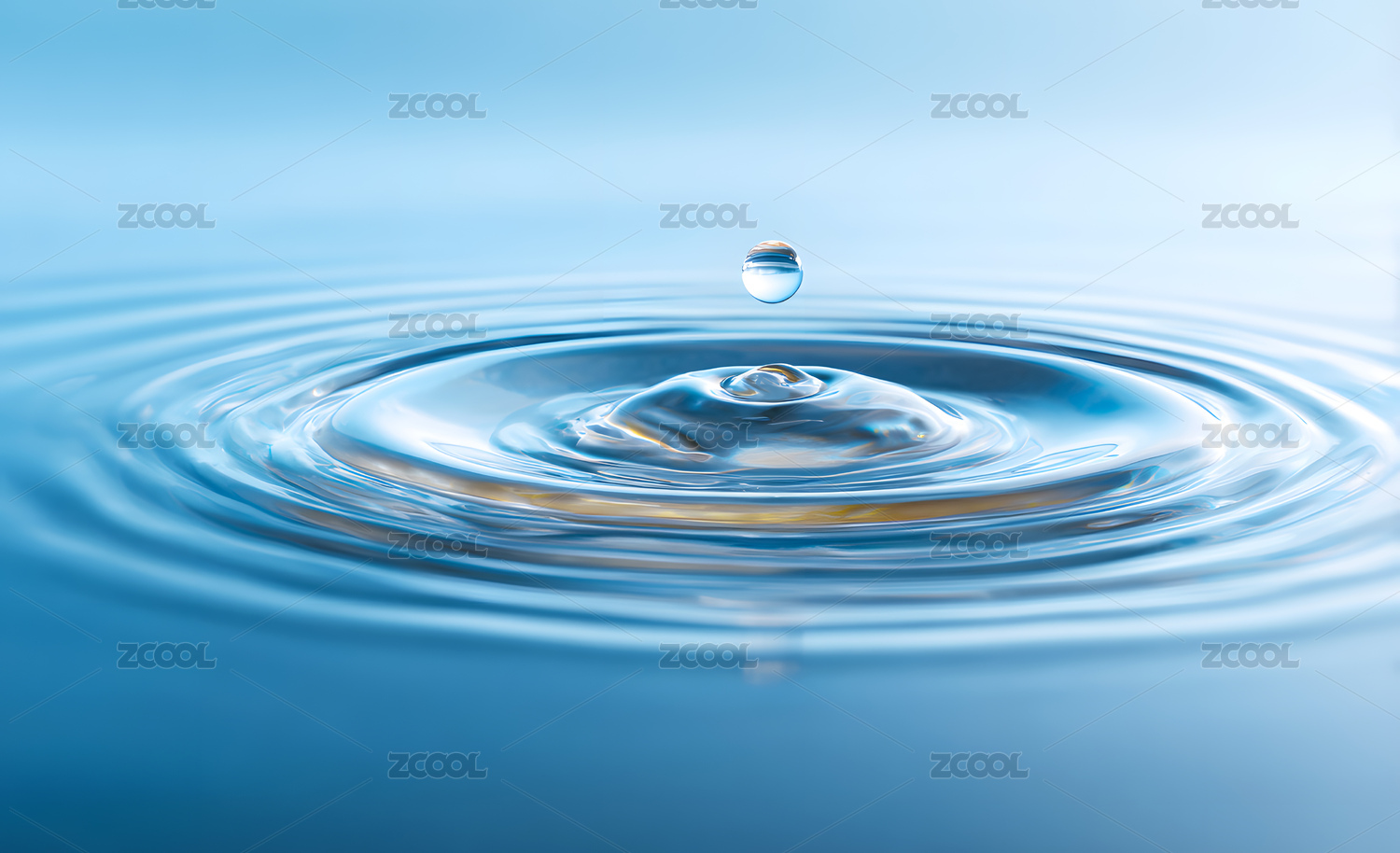水滴坠落瞬间涟漪荡漾清澈蓝色