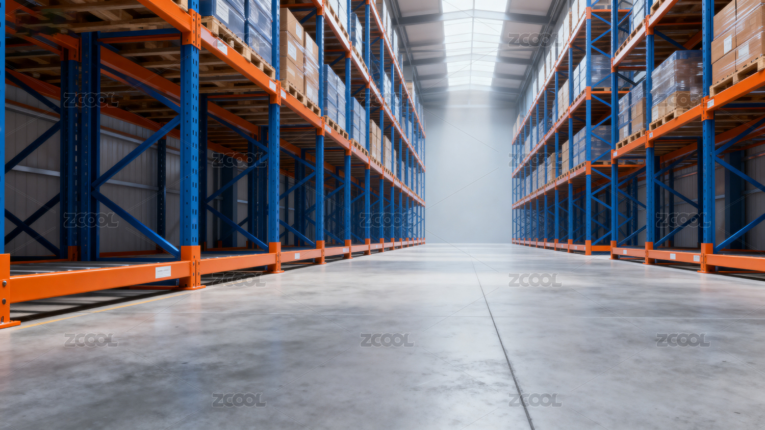 宽敞仓库货架排列整齐