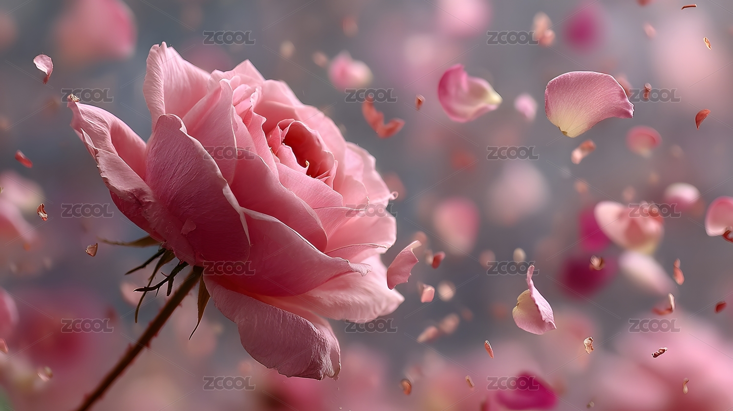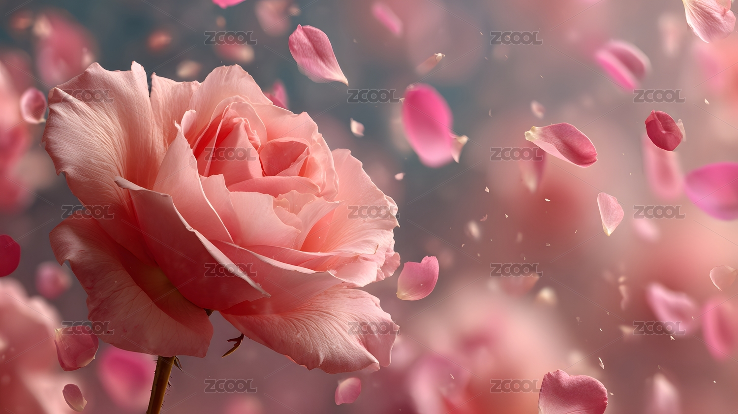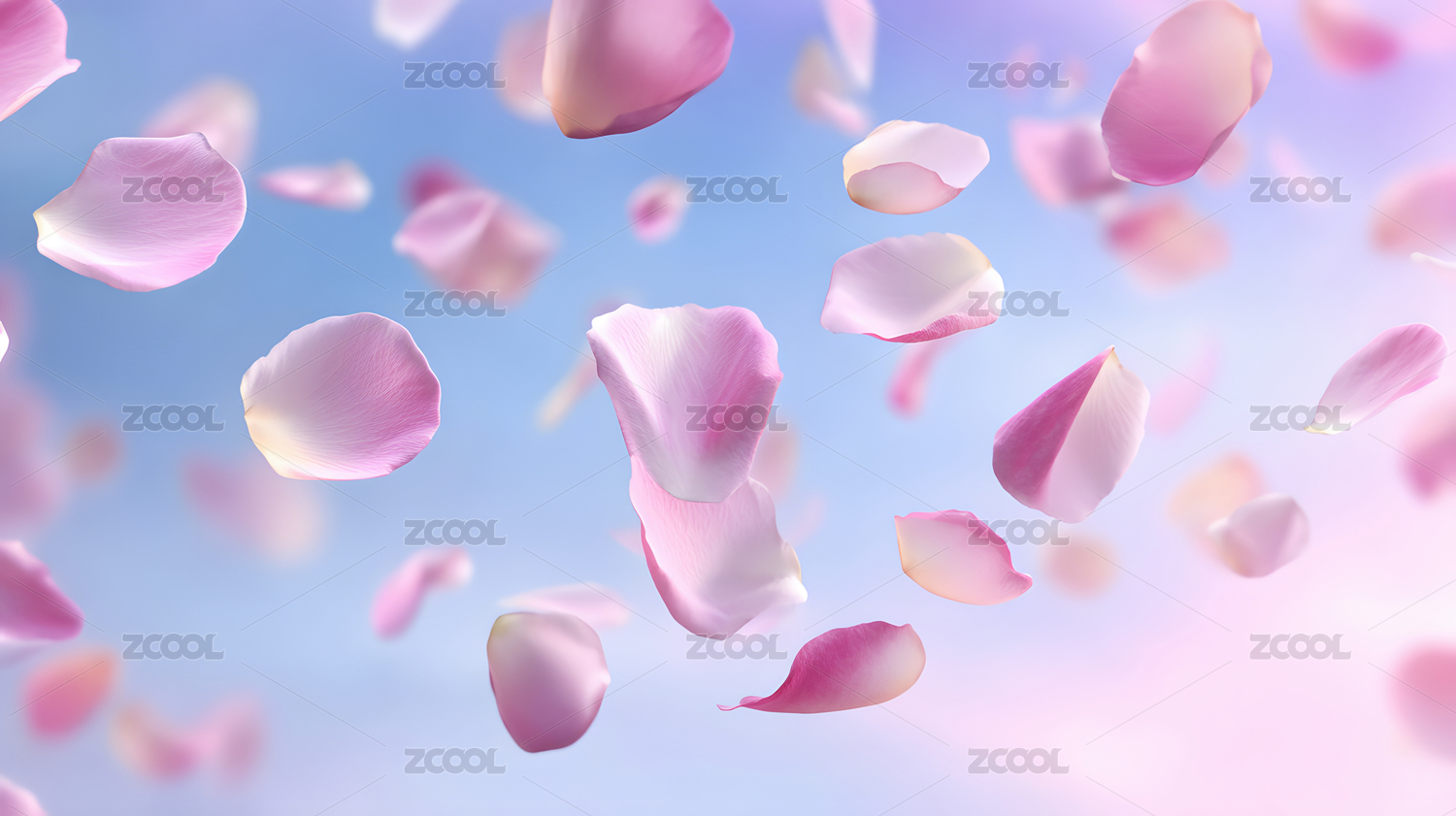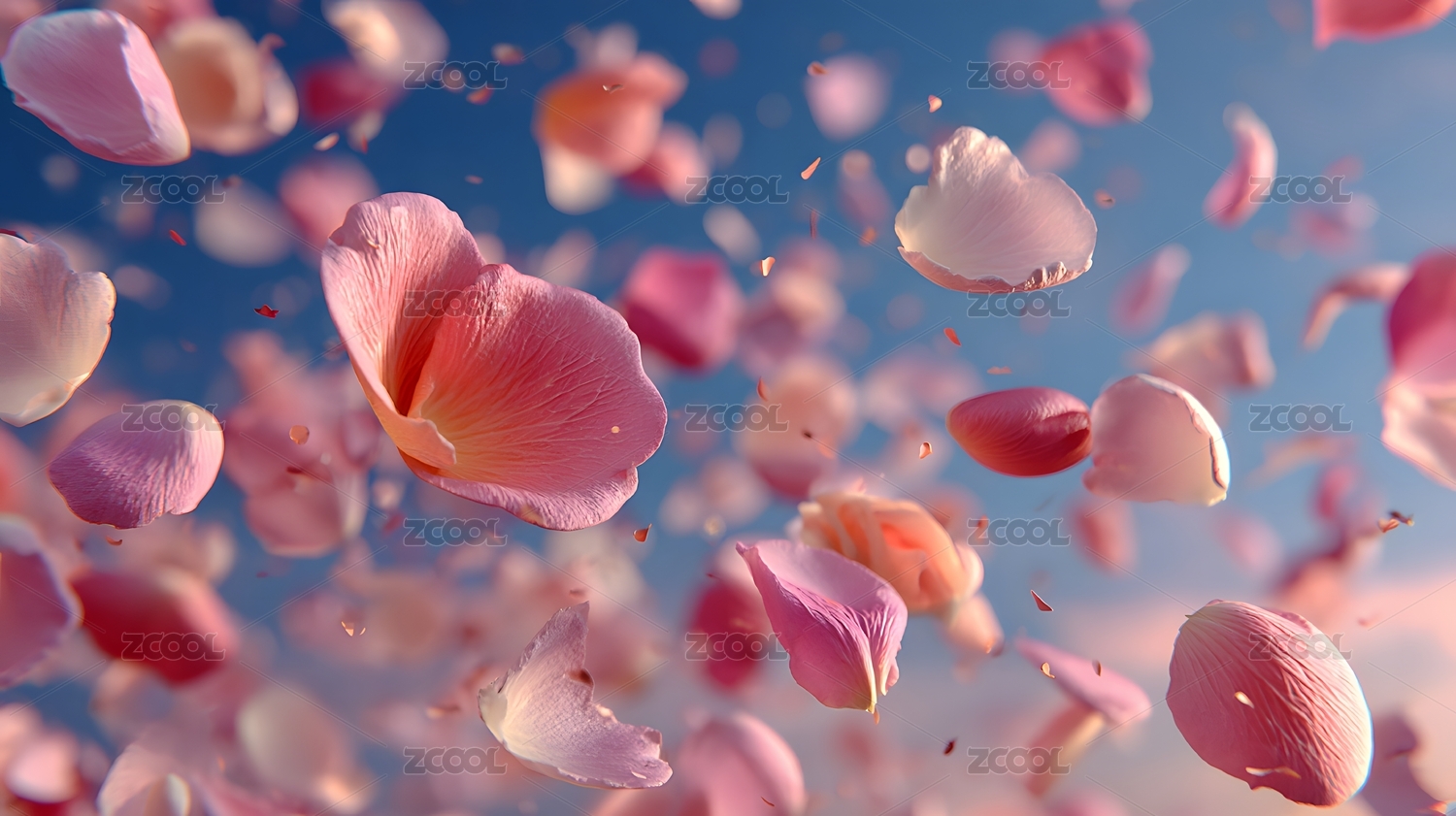 粉色玫瑰花瓣飞舞蓝天唯美梦幻