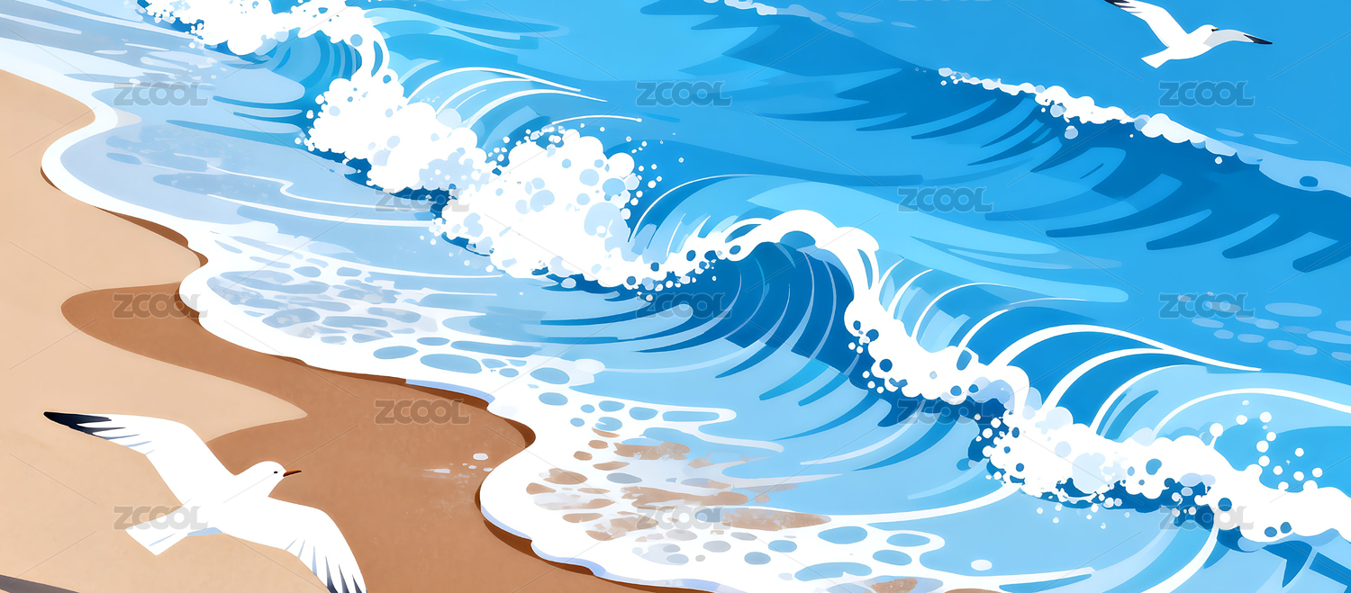 背景,壁纸,大海,海边,沙滩,海鸥,风景,海景,插画,平面插画