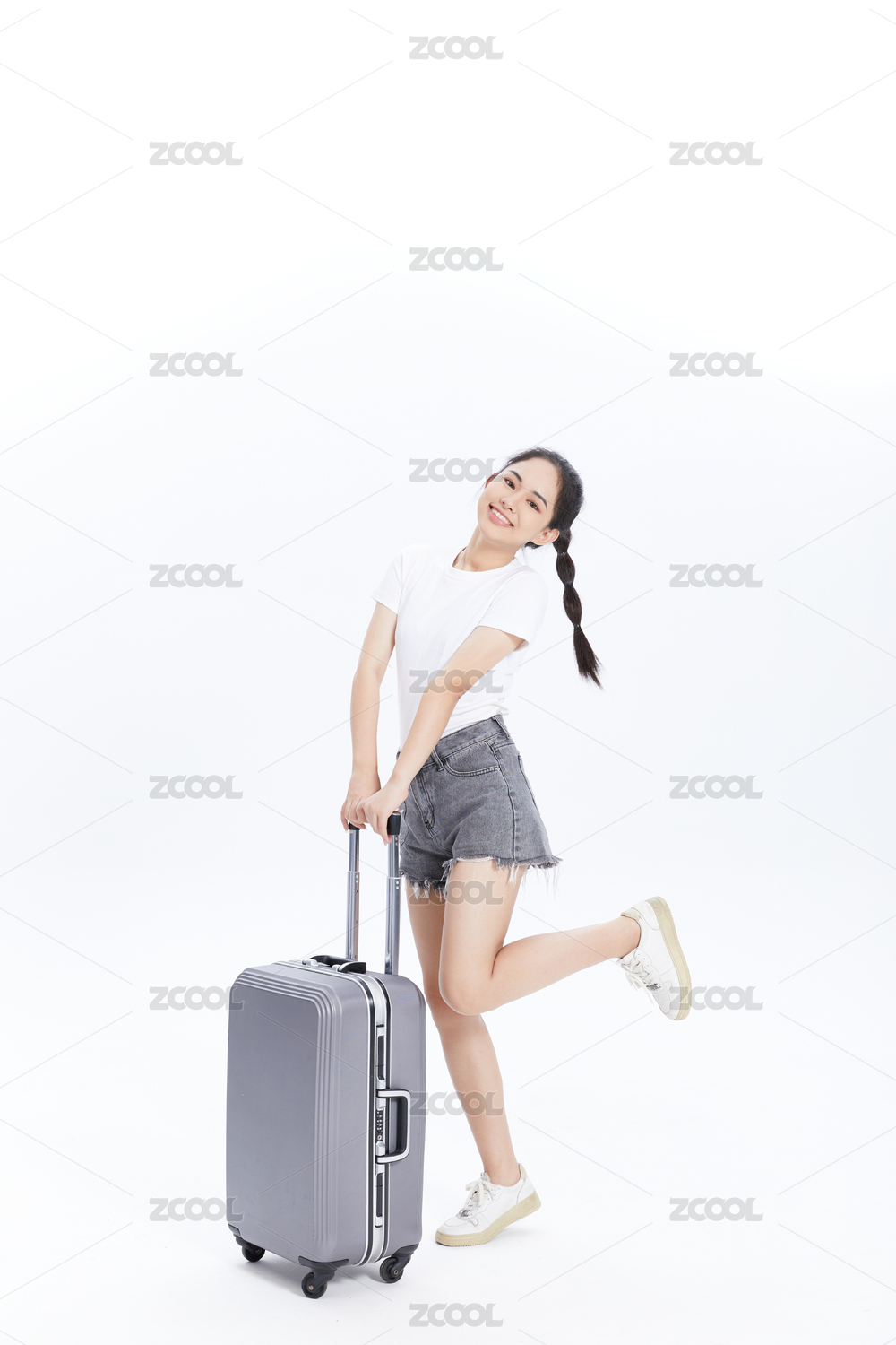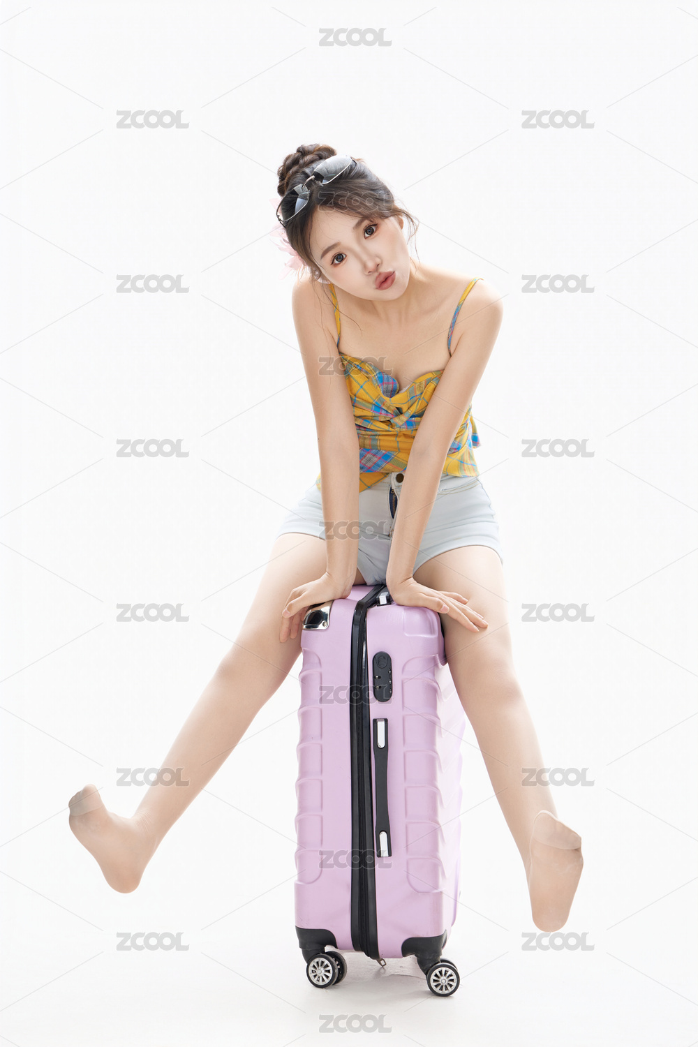 影棚拍摄夏季准备出行旅行的青年女性形象