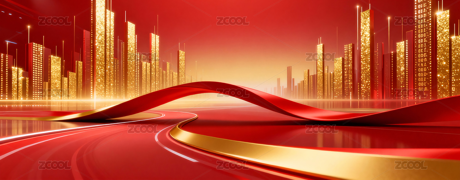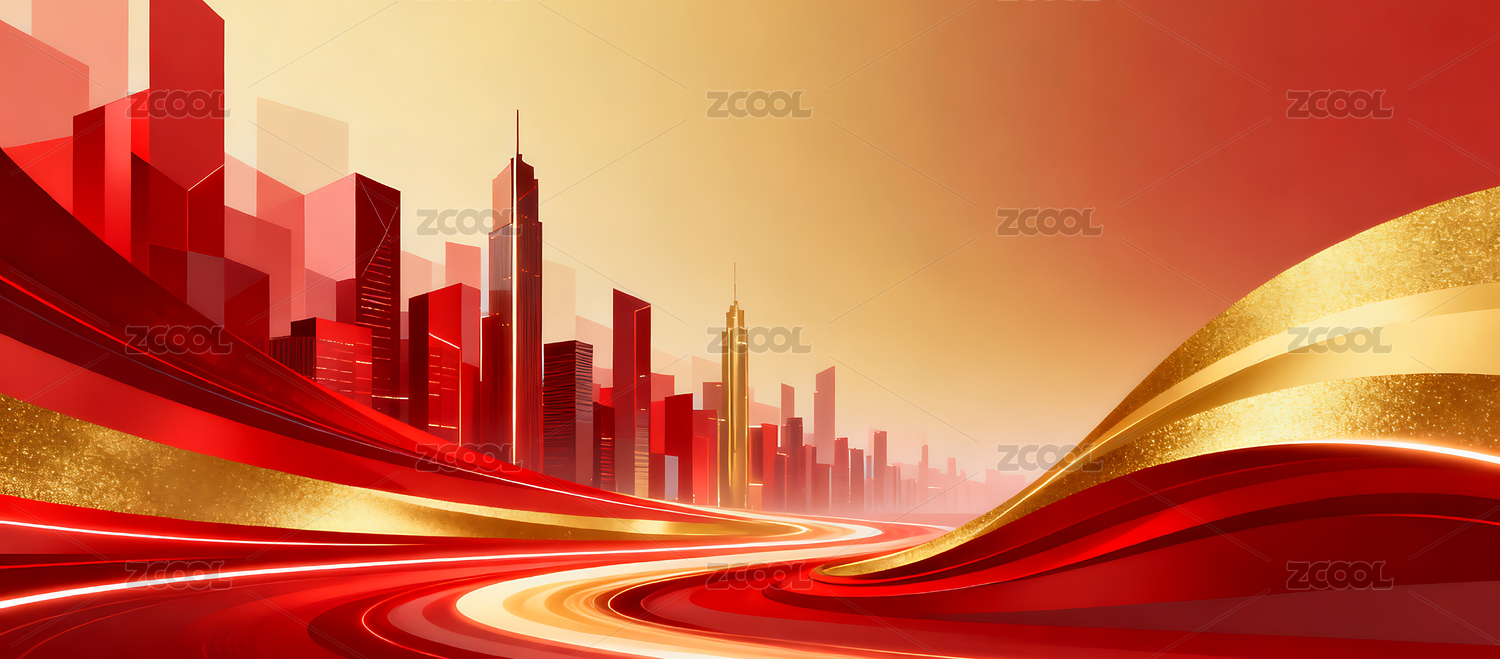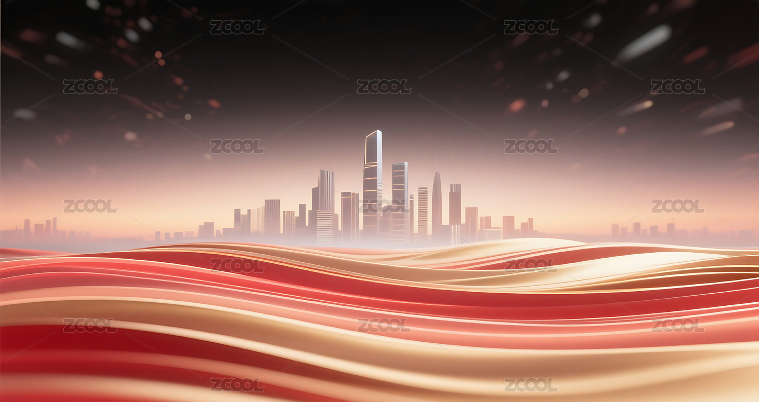 红金色流动城市建筑主视觉背景