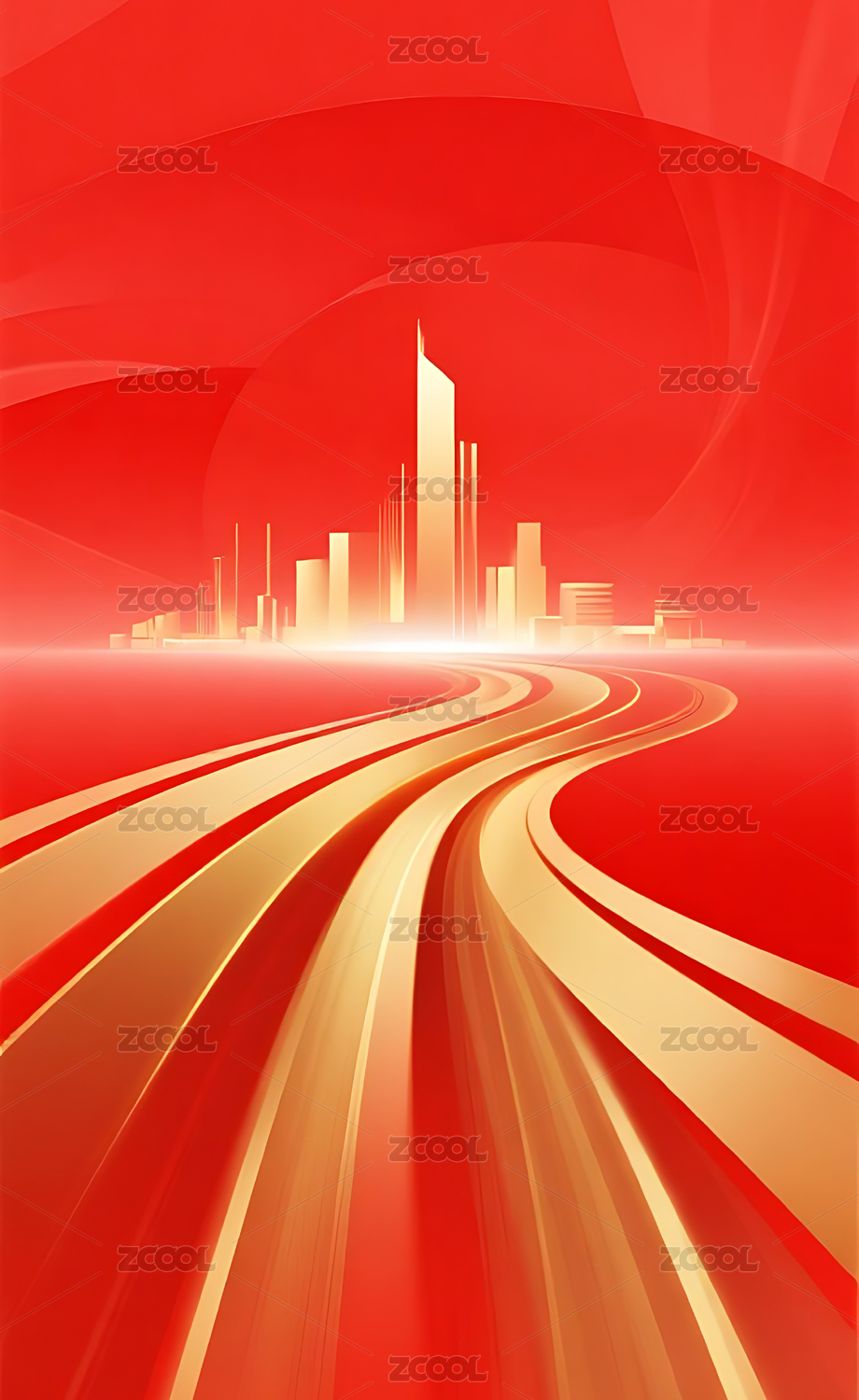 抽象红金色城市建筑道路场景