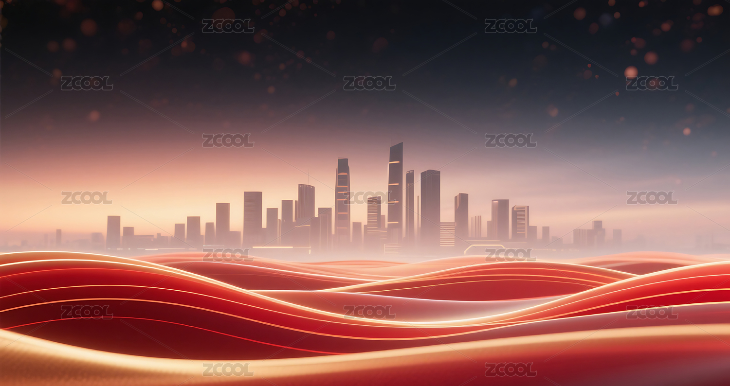 商务科技红金色流动城市建筑主视觉背景