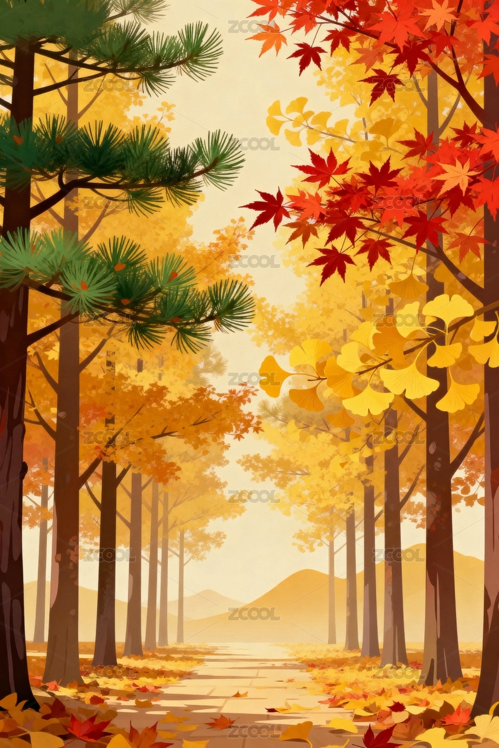背景,秋天,秋季,插画,壁纸,树林,简约,森林,平面插画,扁平风格