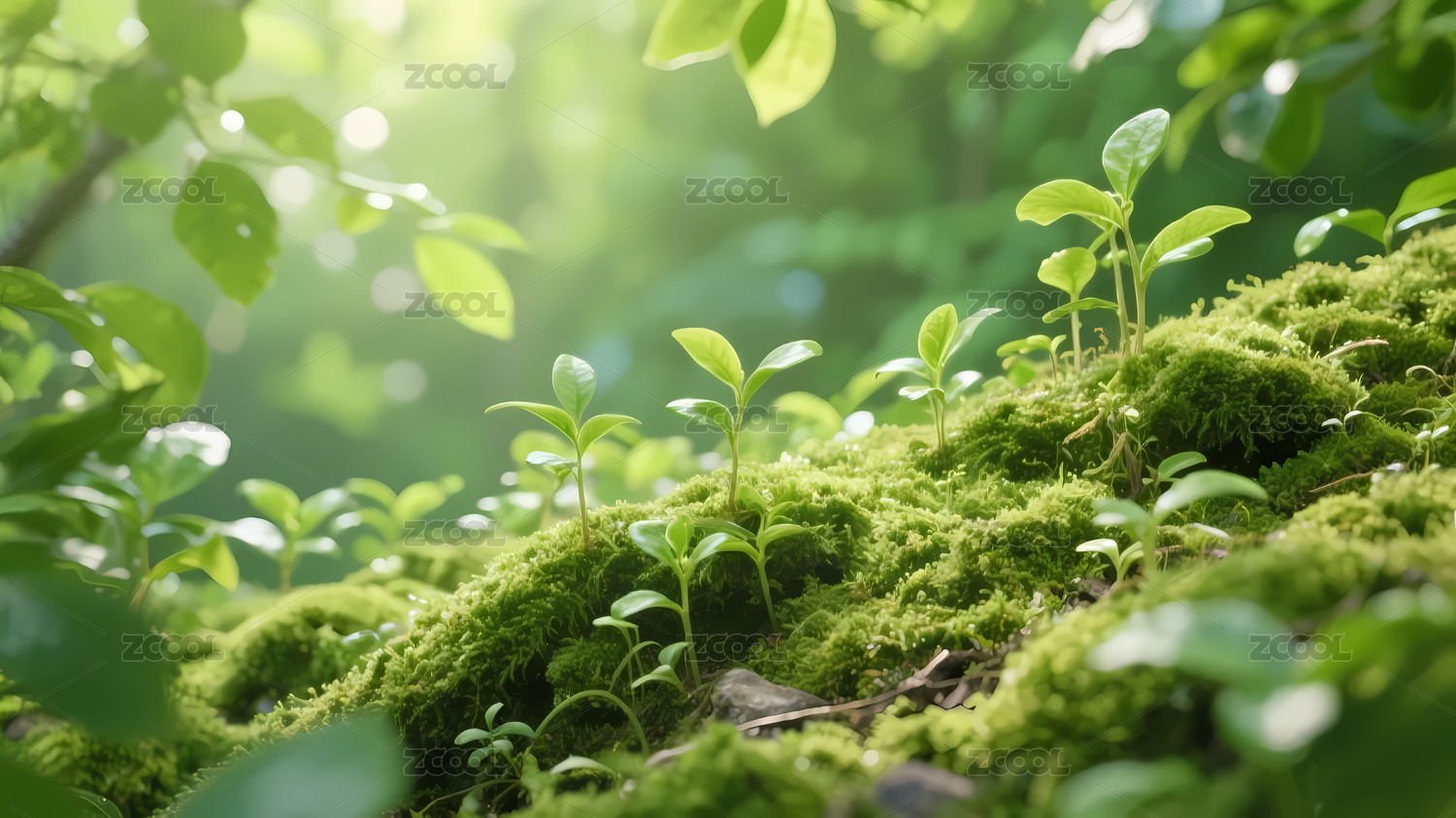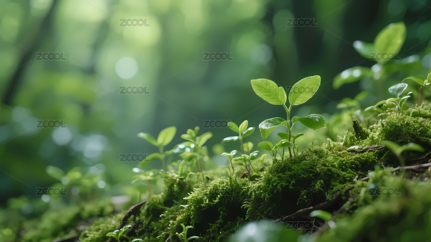 嫩绿小植物苔藓地面