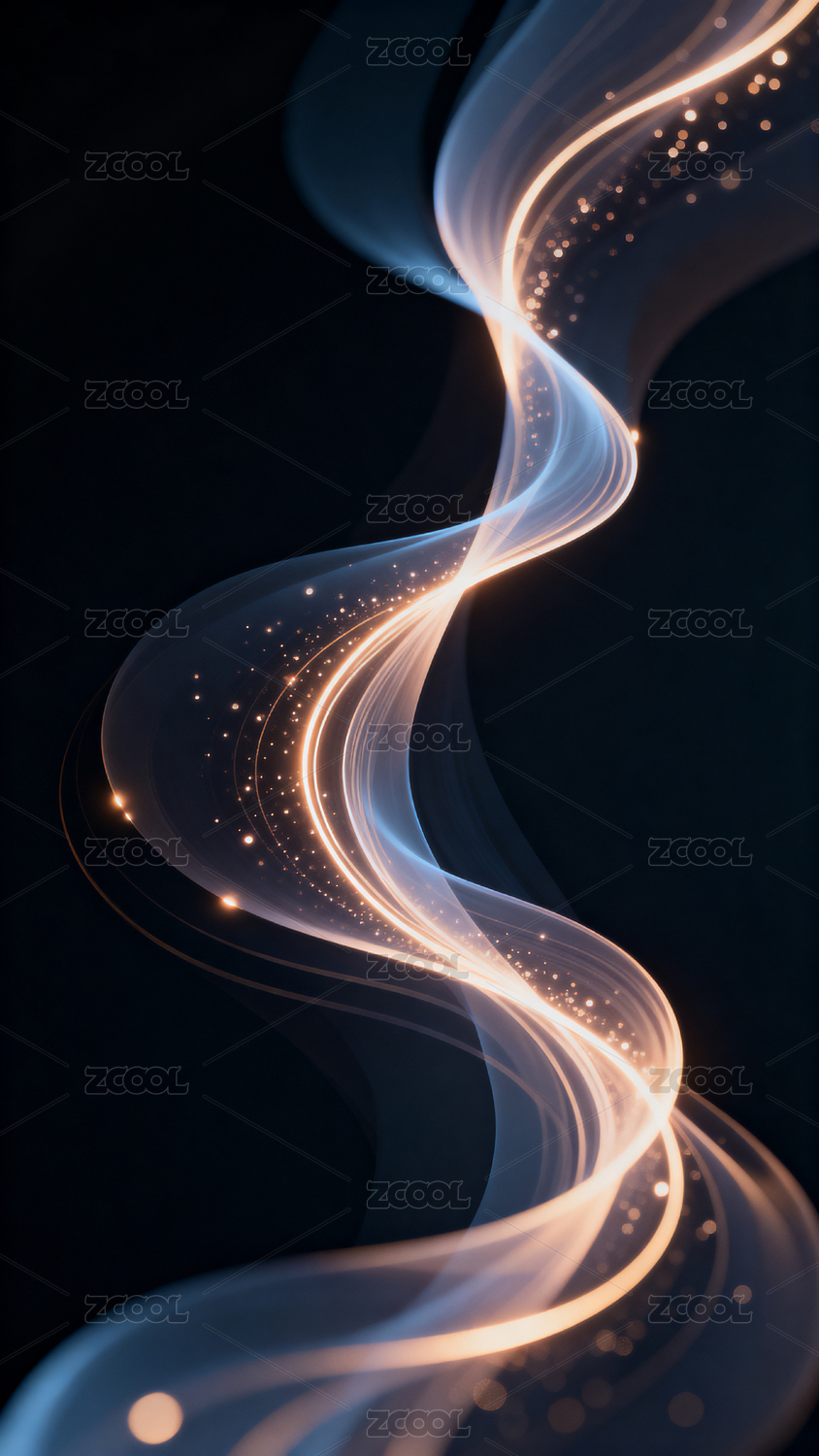 梦幻,蓝色,渐变,背景,优雅,流动,深色,丝带,光点,金色