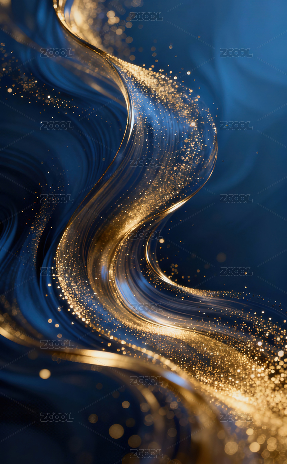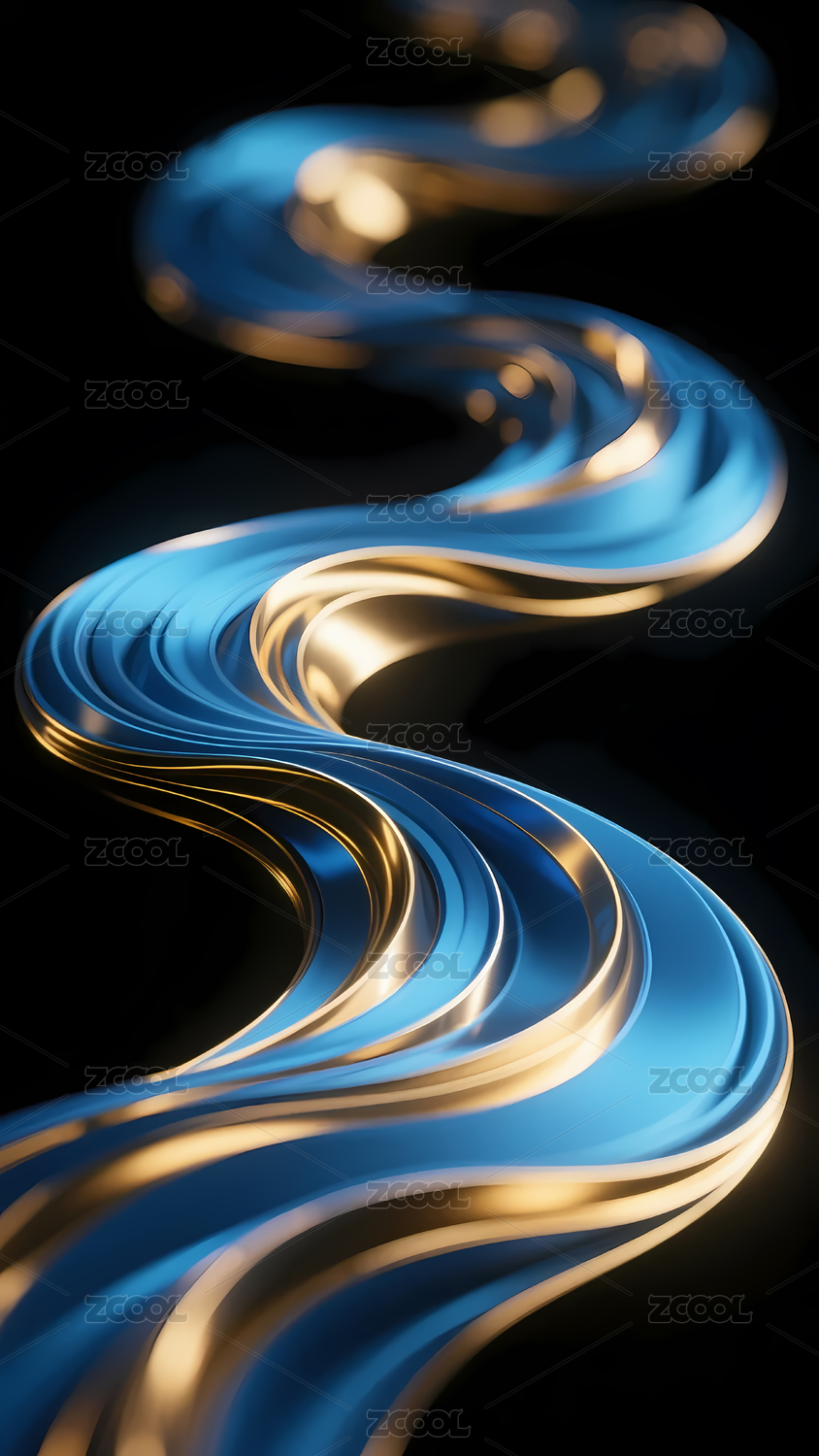 金色与蓝色的流动曲线