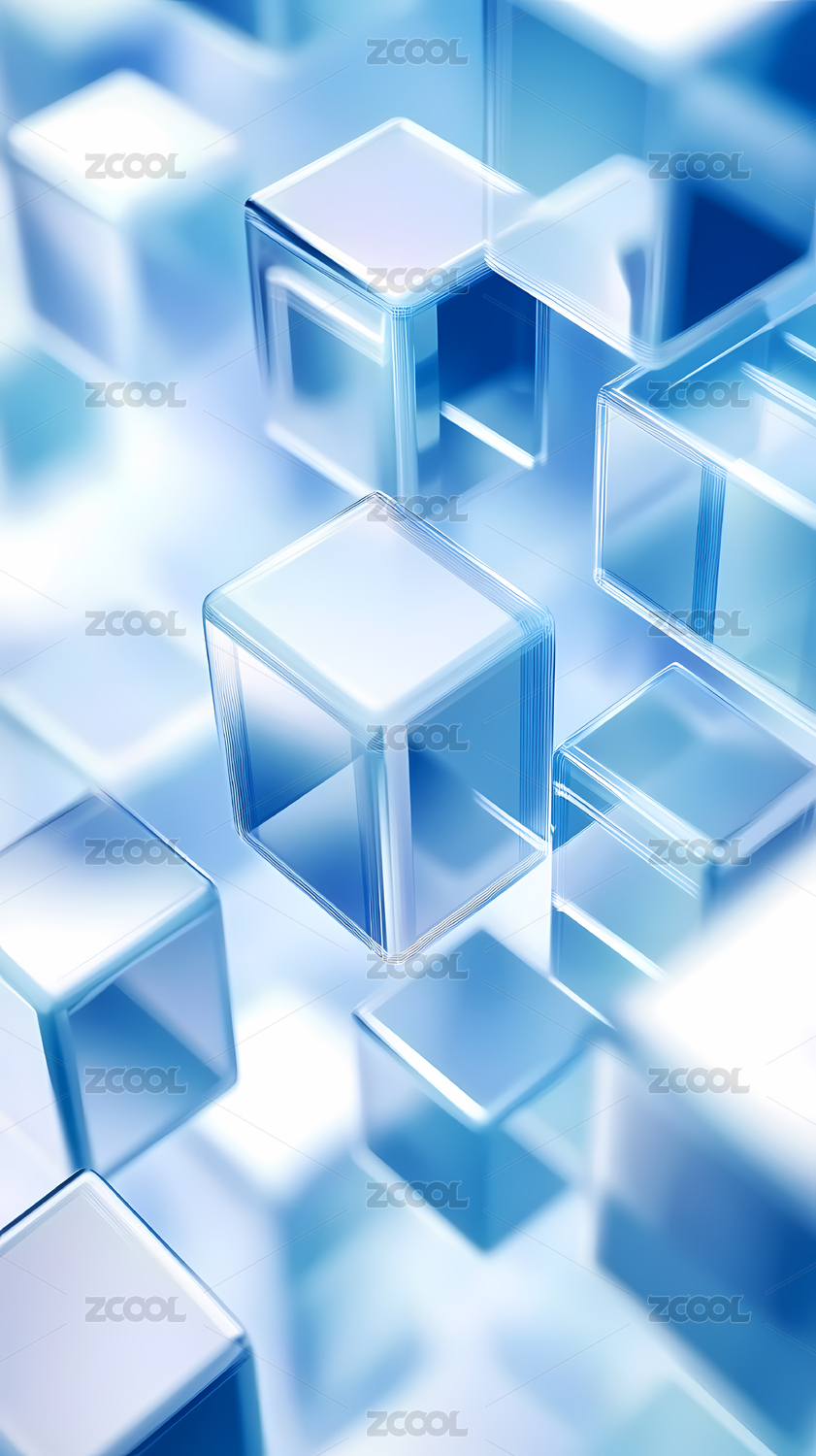 未来科技感蓝色水晶透明玻璃几何立方体背景