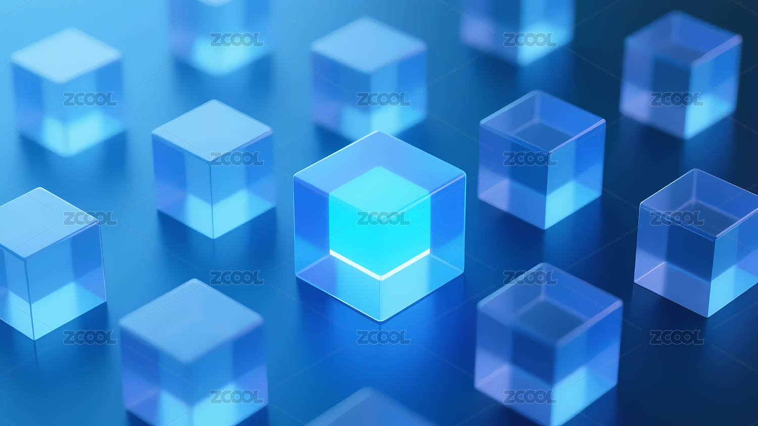 蓝色发光立方体深蓝底