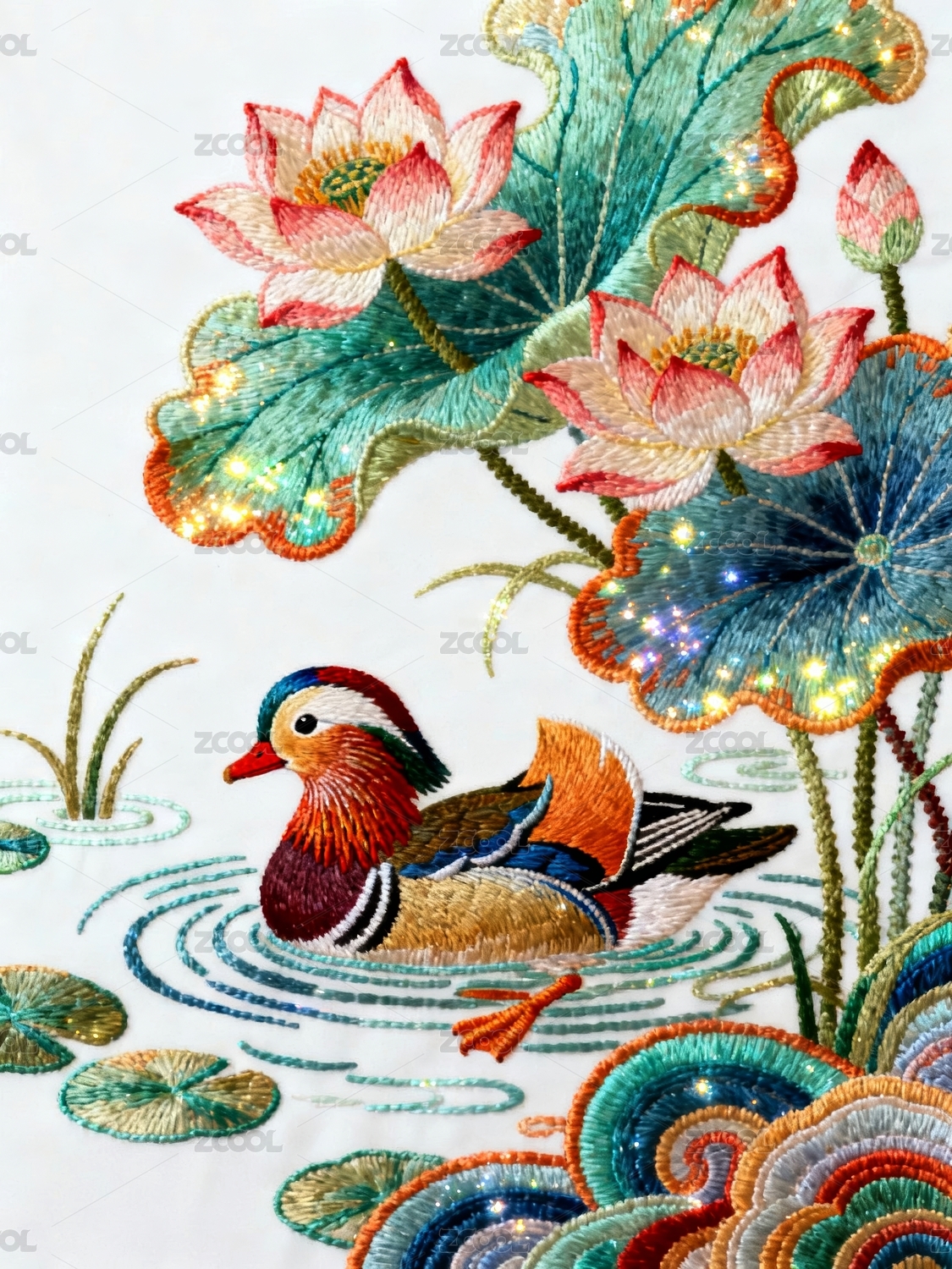 主视觉,商业,壁纸,鸳鸯,荷花,精美,刺绣,场景,荷叶,池塘