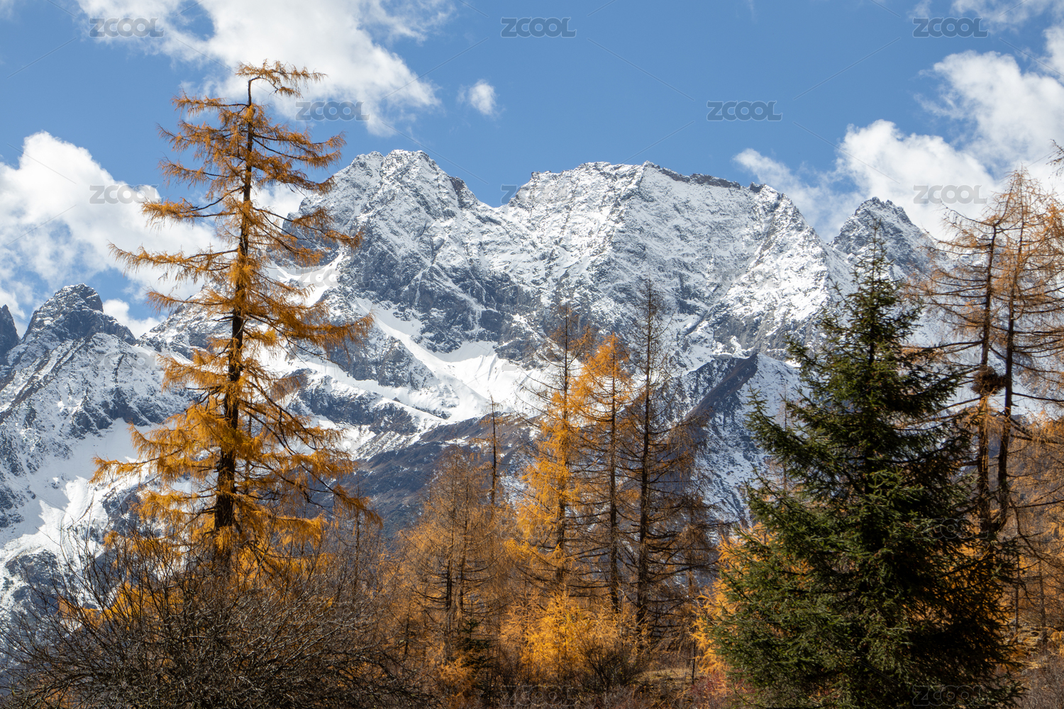 川西秋色,雪山与金色松林