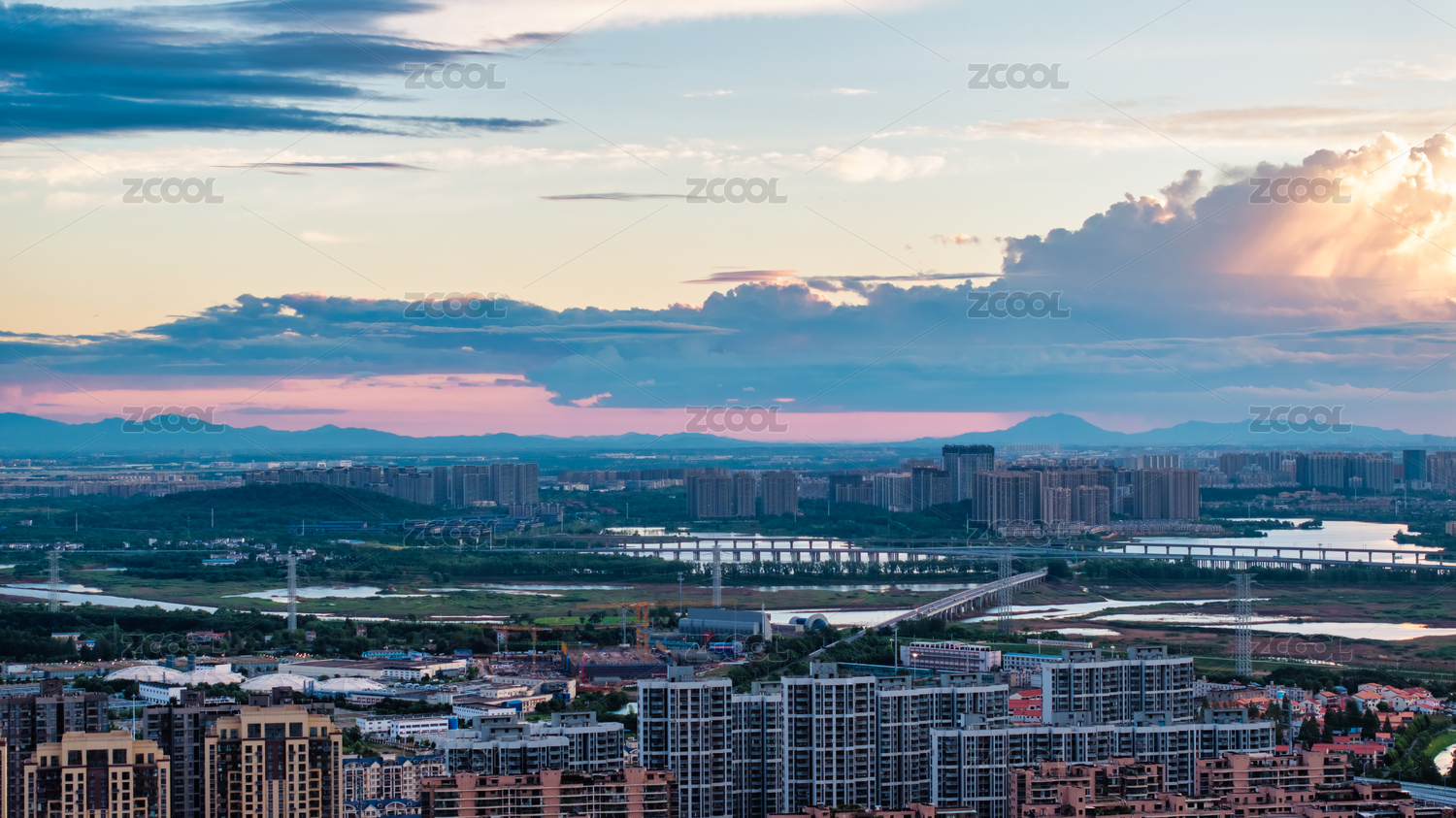 无锡惠山晚霞夜景航拍