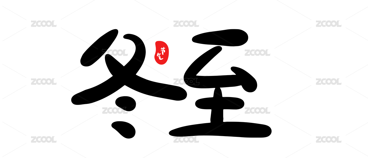 冬至,二十四节气中国风毛笔书法矢量字体