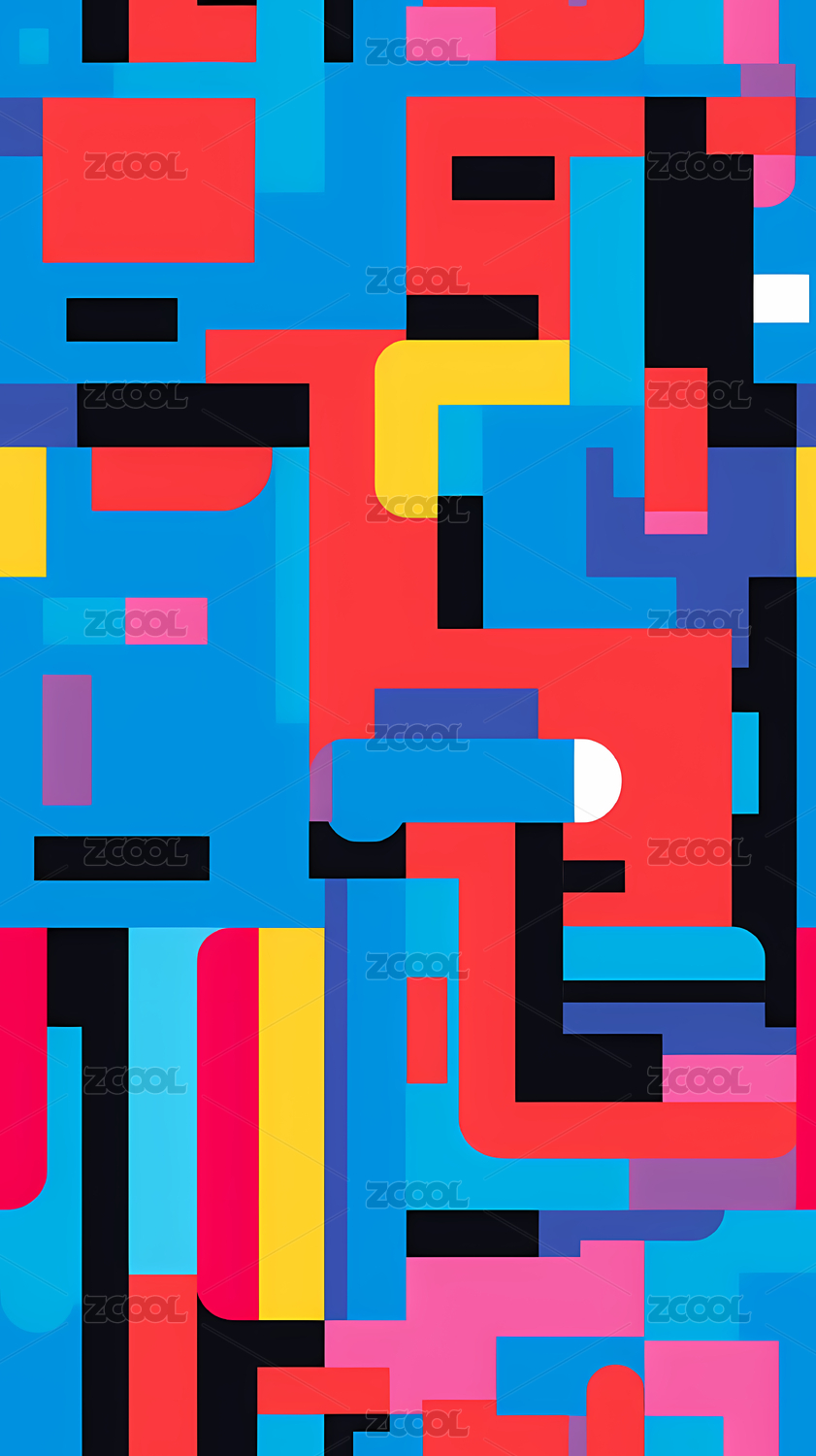 明亮大胆色彩图案几何抽象设计海报背景