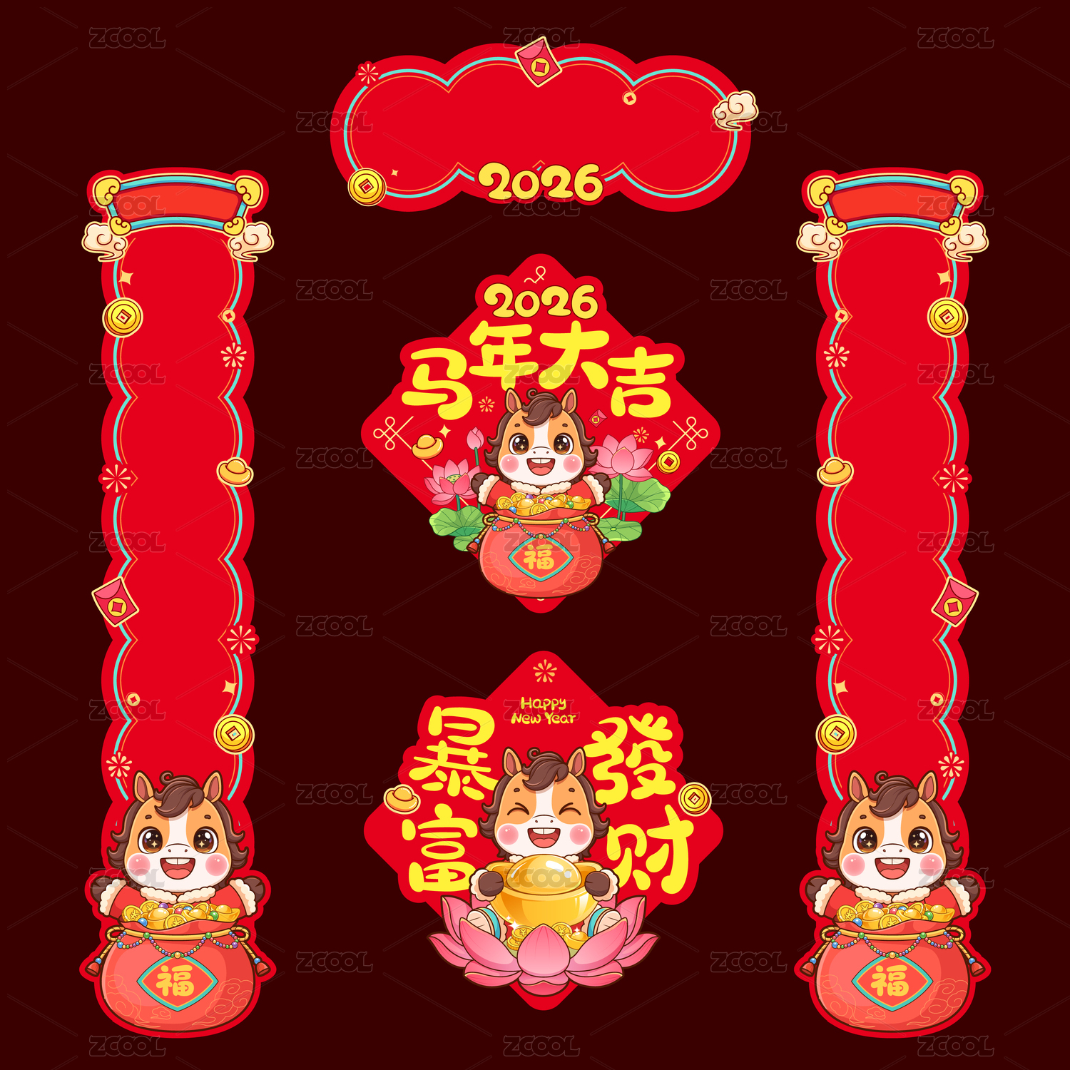 新年,物料,宣传,春节,生肖,动物,海报,祝福,对联,传统
