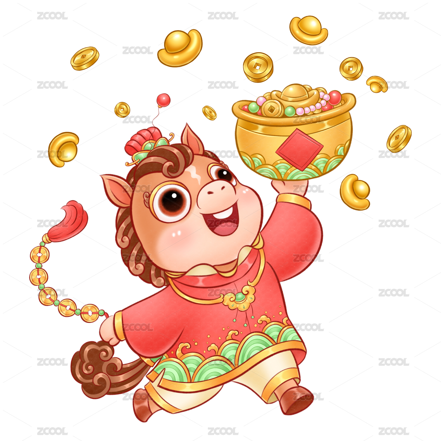 小马举着聚宝盆送福财源滚滚来