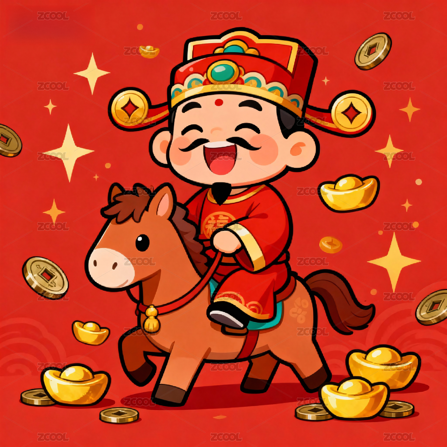 喜庆财神骑马迎新年
