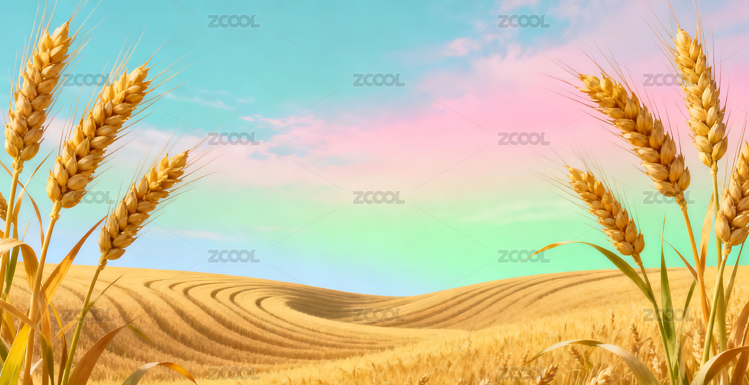 背景,秋天,秋季,麦田,插画,壁纸,天空,麦穗