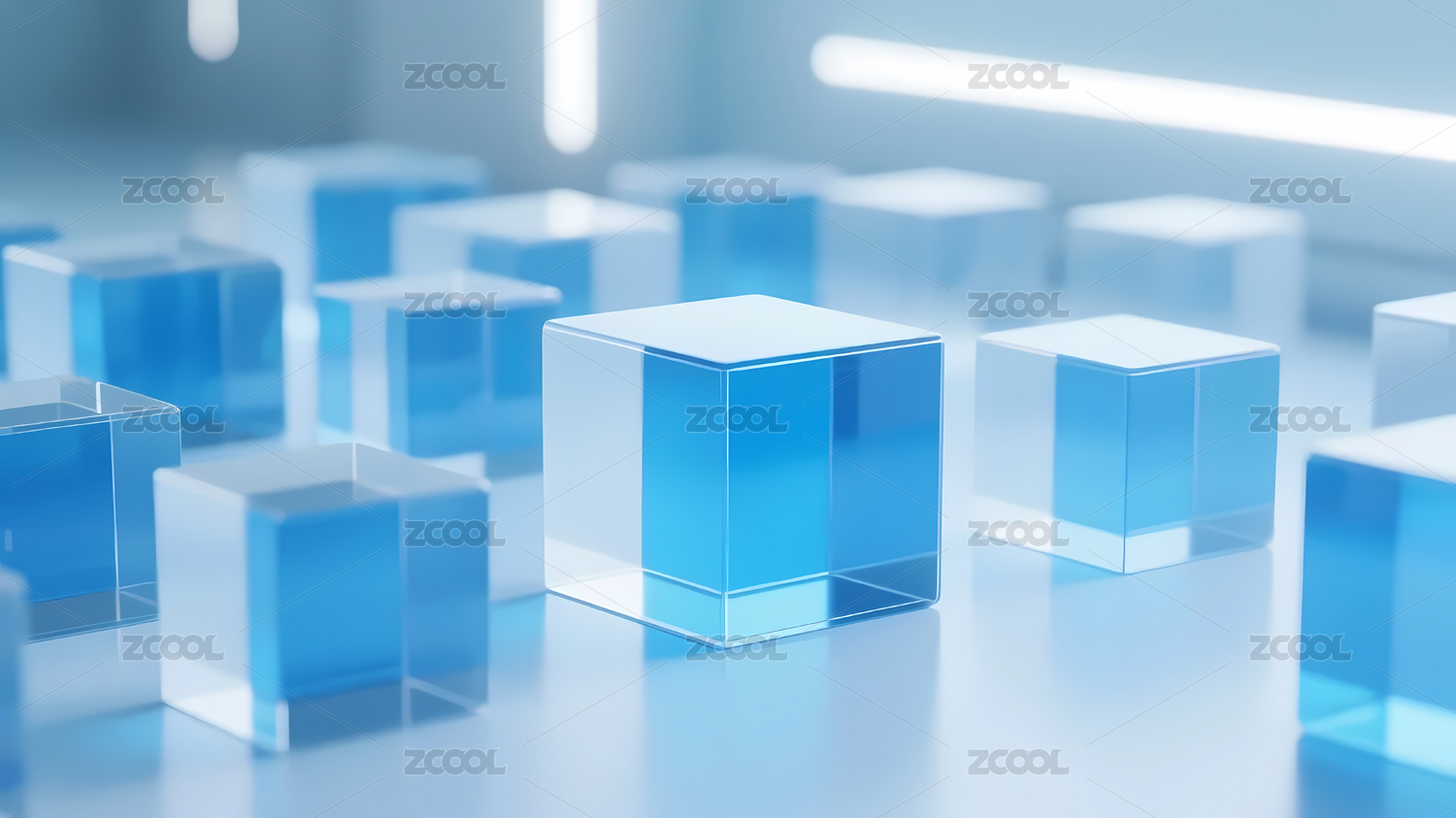 蓝色透明立方体的科技之美