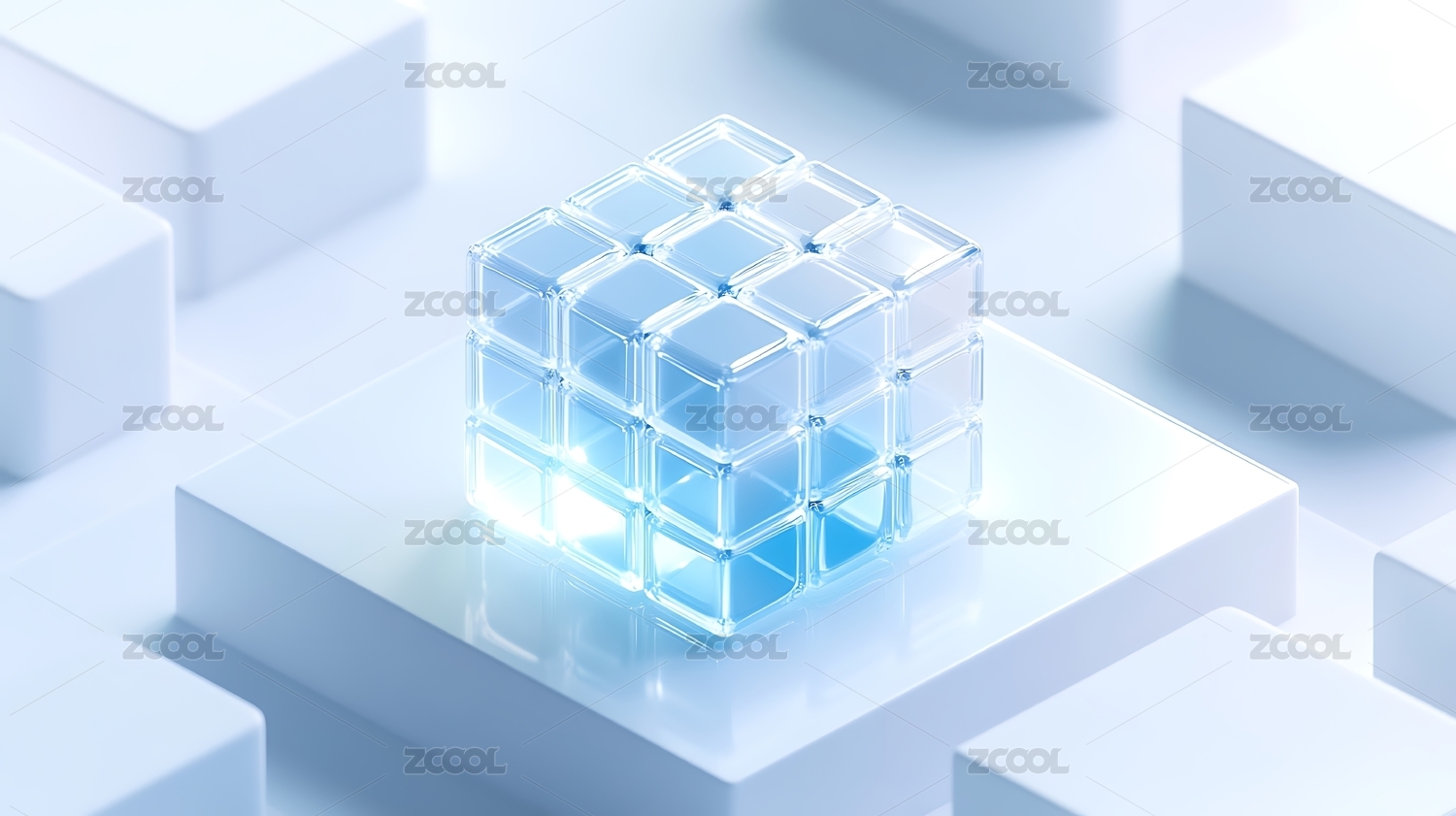 透明蓝色立方体的科技美感