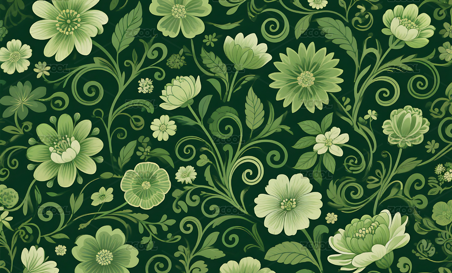 背景,壁纸,时尚,插画,绿色,图案,花朵,复古