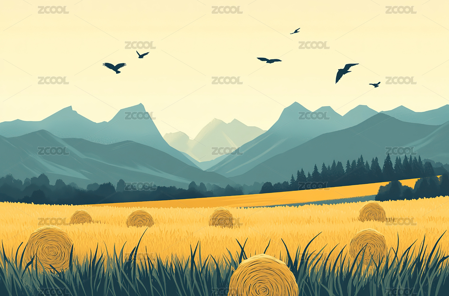 背景,秋天,秋季,插画,壁纸,橙子树,夕阳,落日,户外,黄昏
