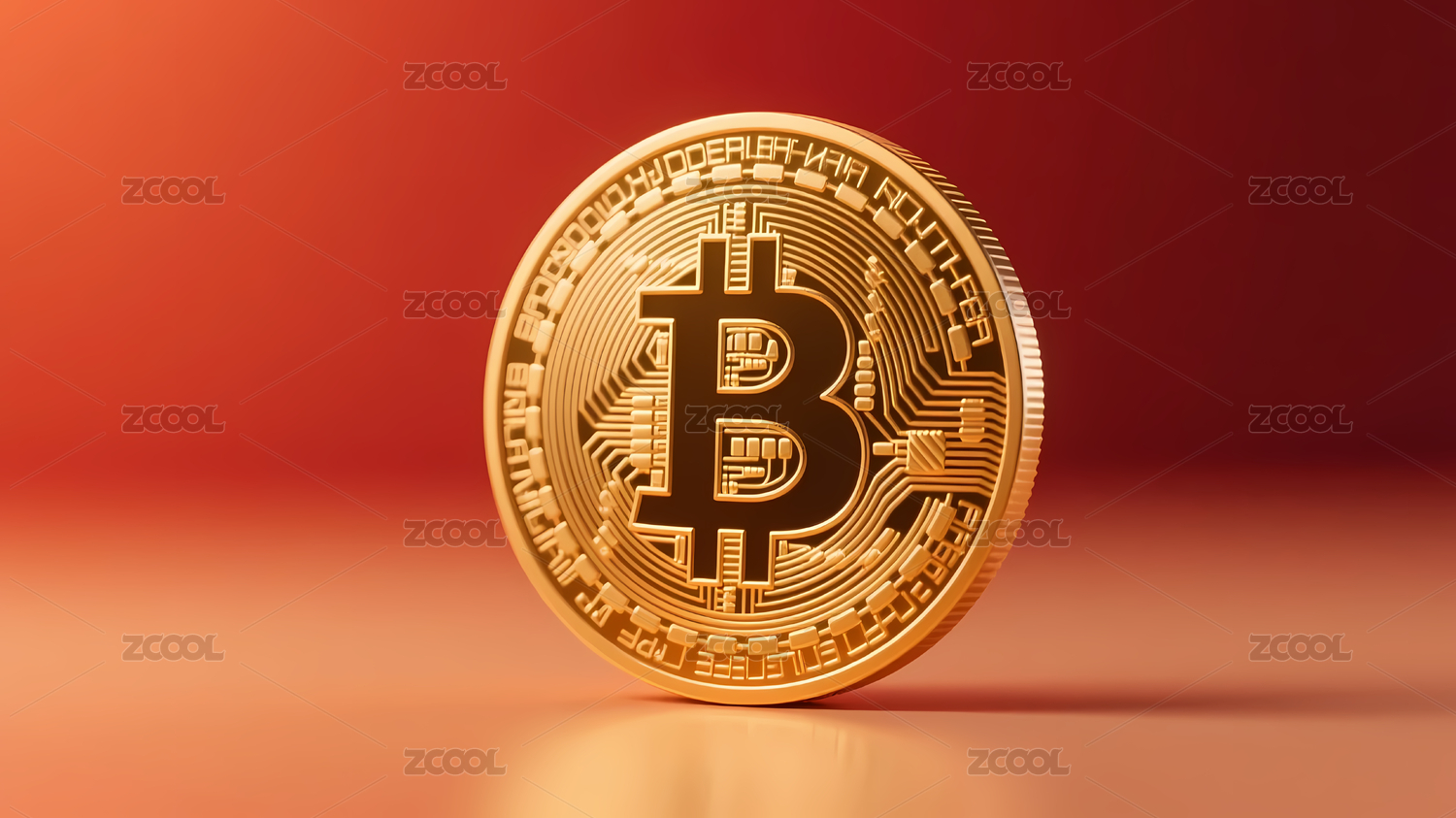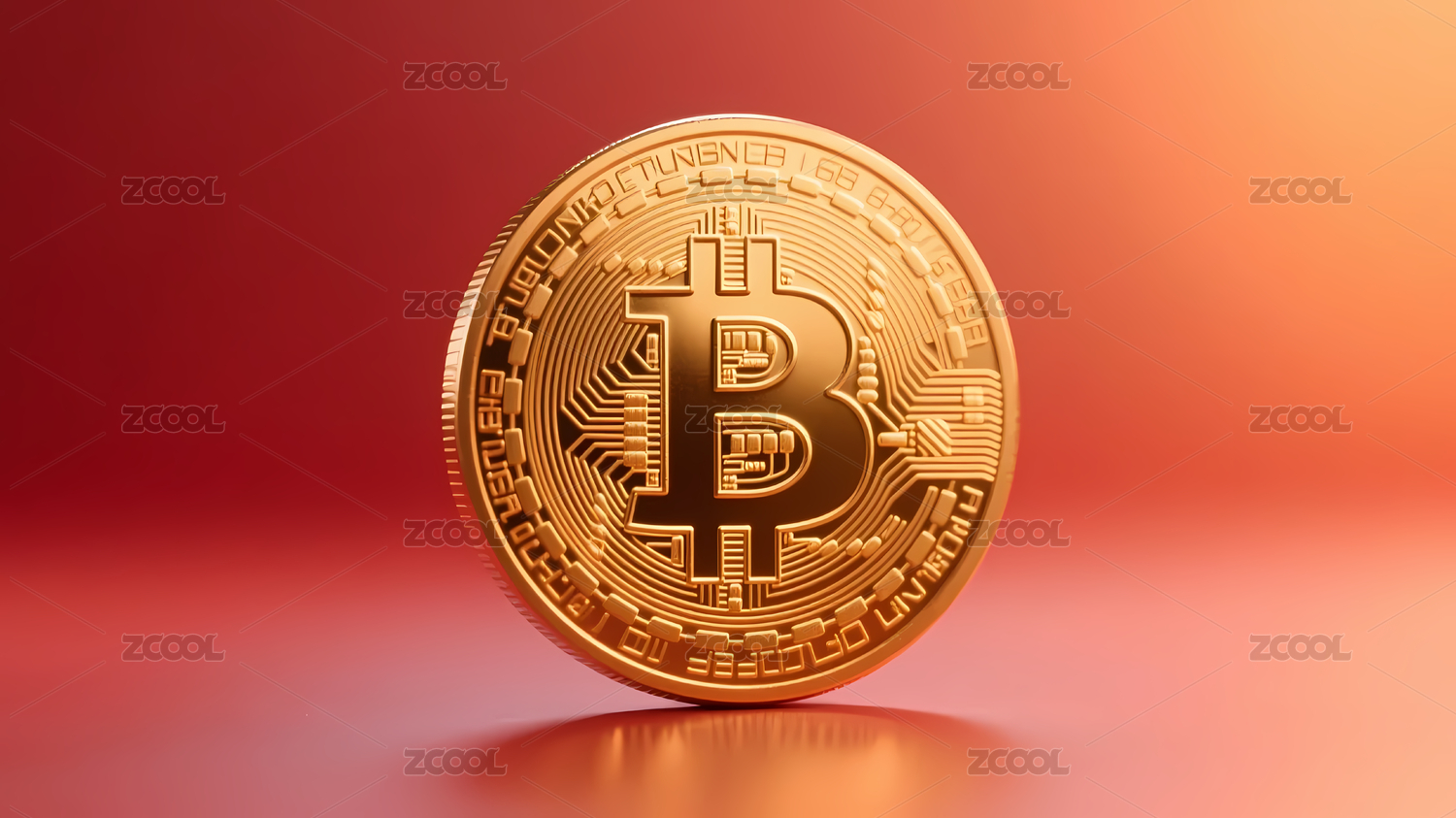 金色比特币与橙红渐变