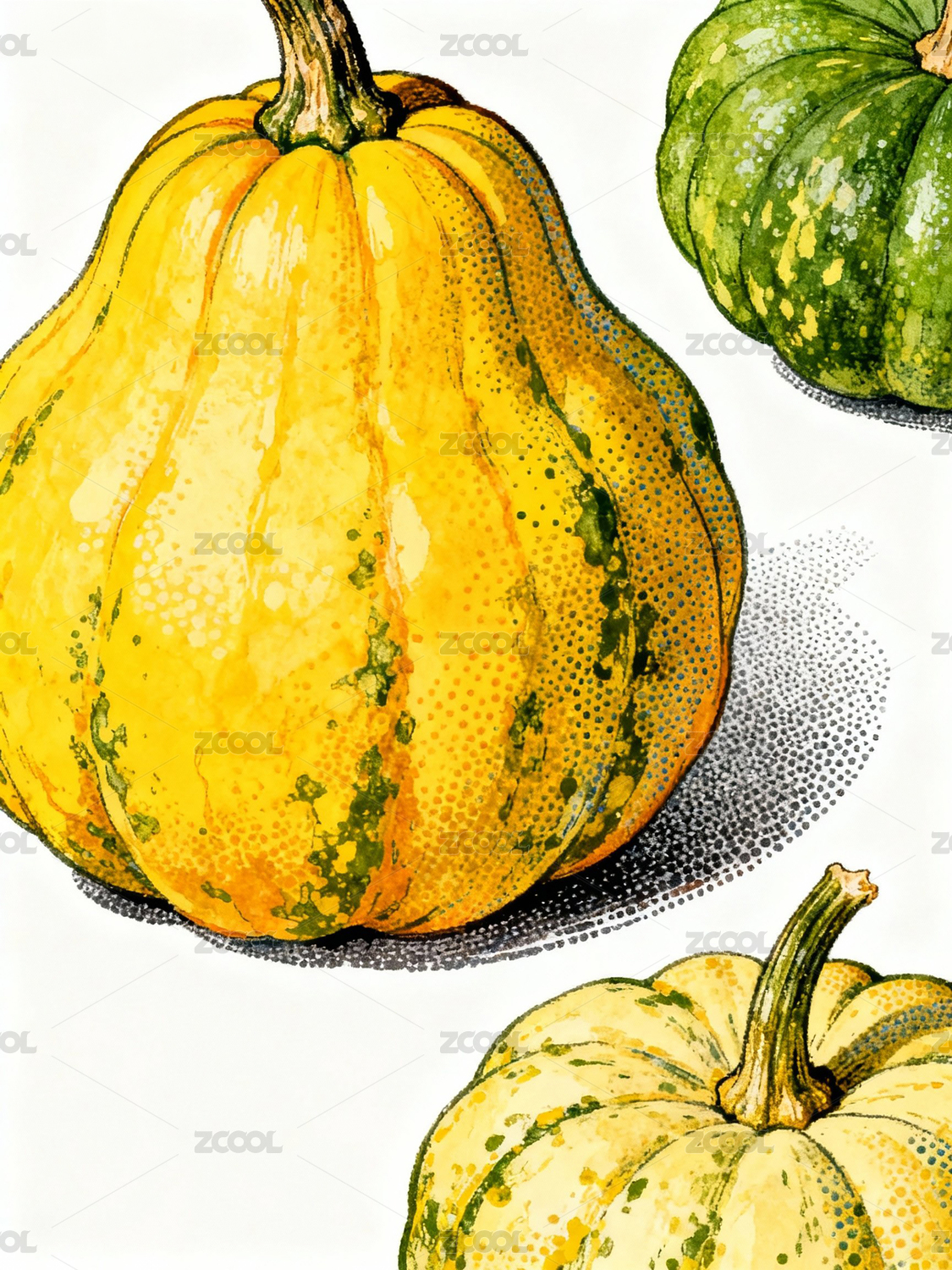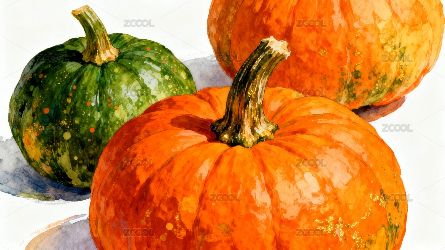 主视觉,商业,壁纸,场景,南瓜,多彩,水彩,静物,蔬果,绘画