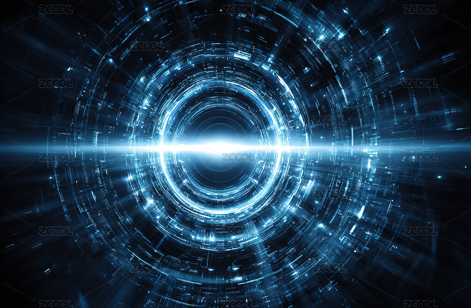 蓝色科技全息抽象霓虹光效粒子光纤圆背景