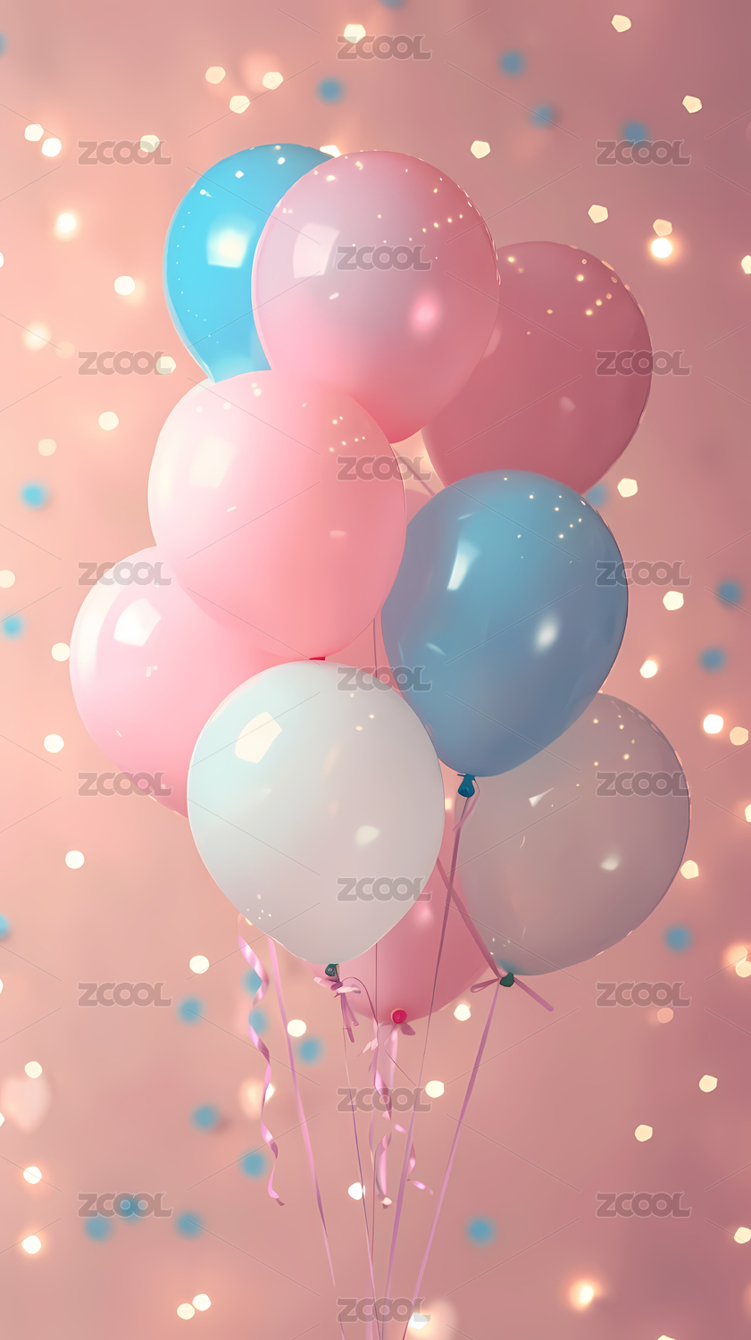 粉色的背景上蓝色白色粉色的气球