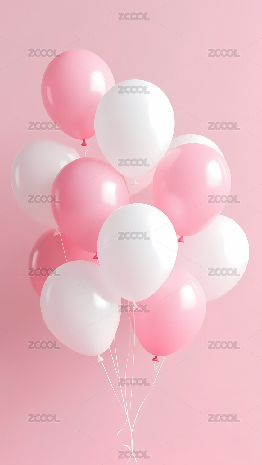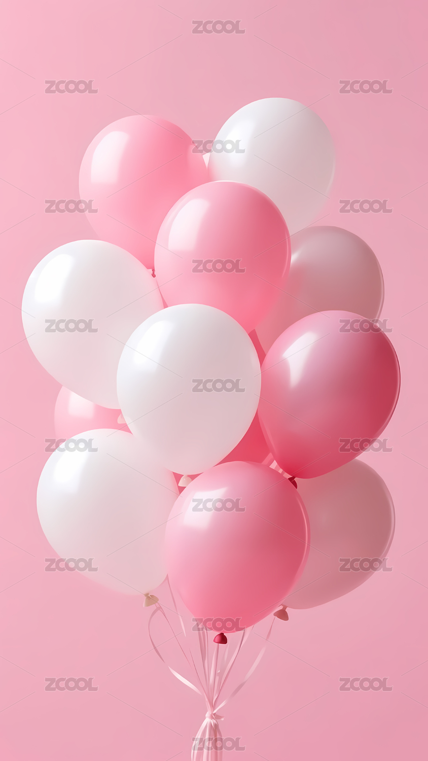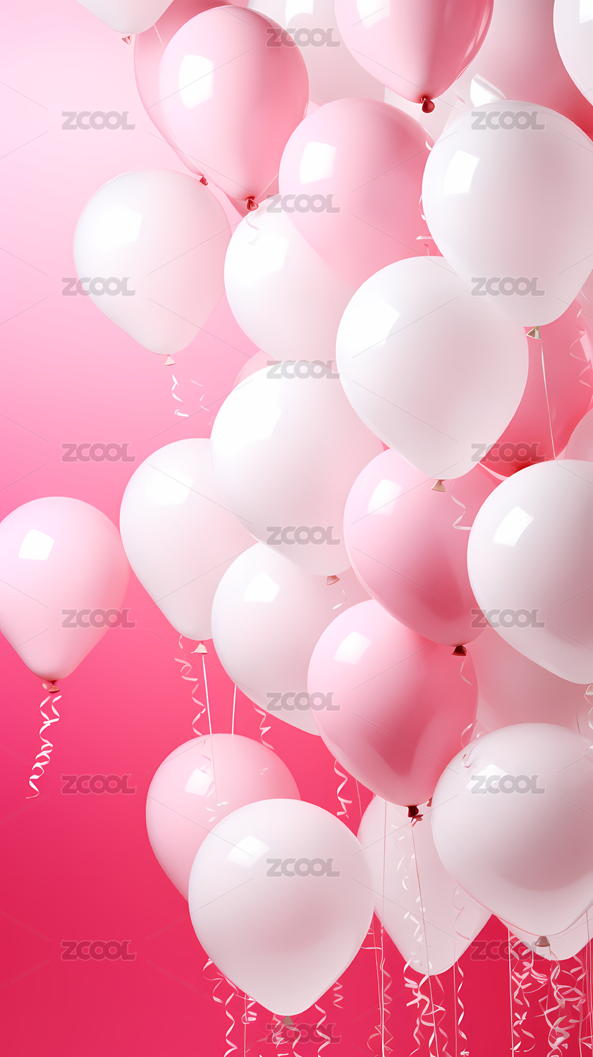 背景,白色,简洁,明亮,柔和,装饰,气球,粉色,簇拥,浪漫