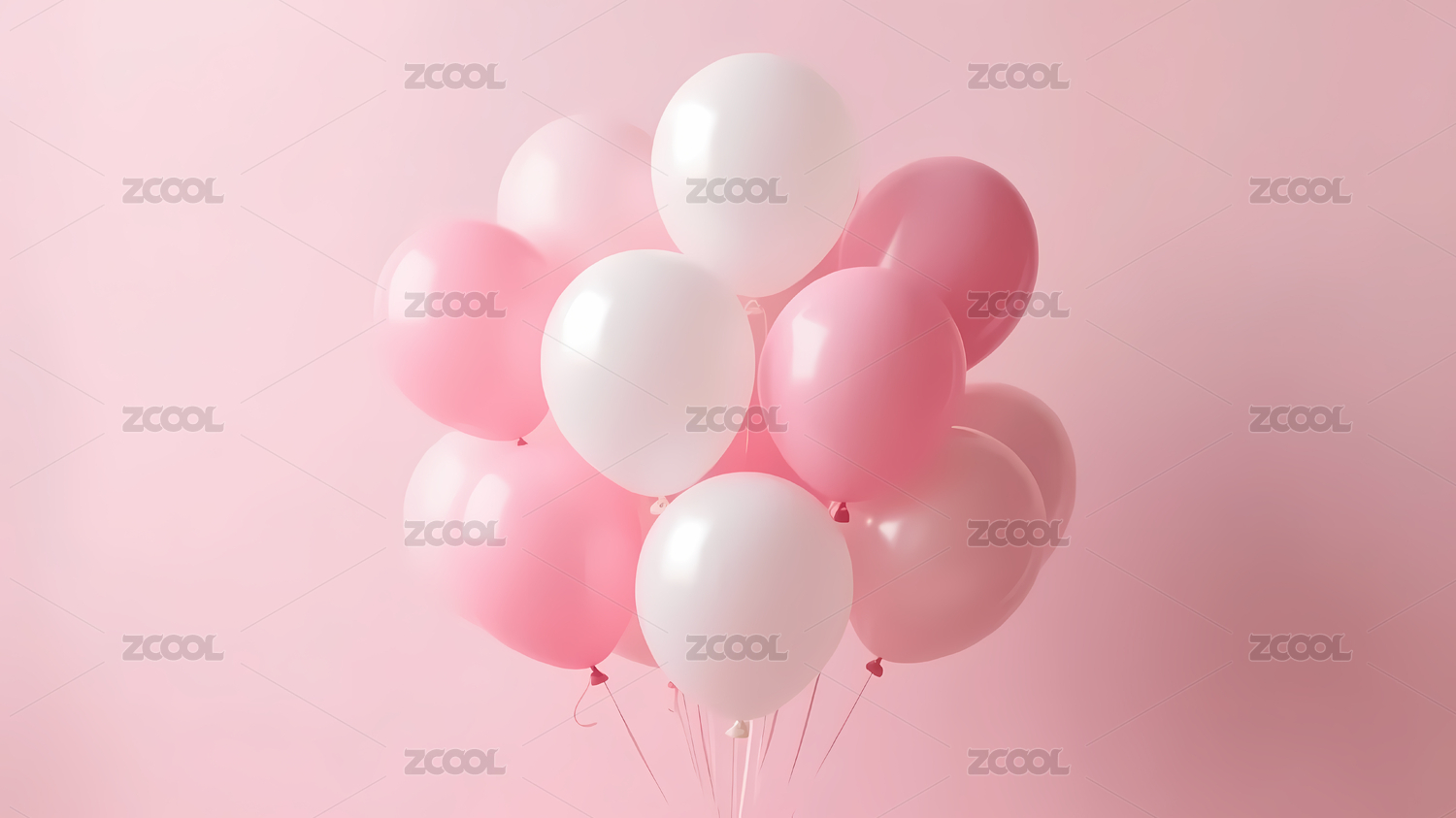 粉色系气球悬挂装饰画面