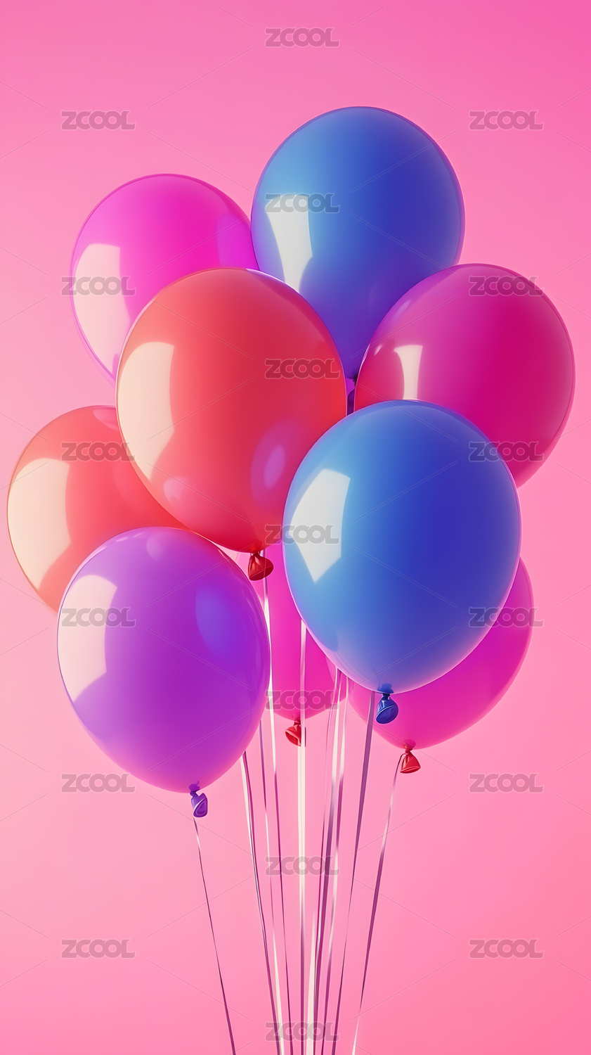 彩色气球飘浮粉色背景