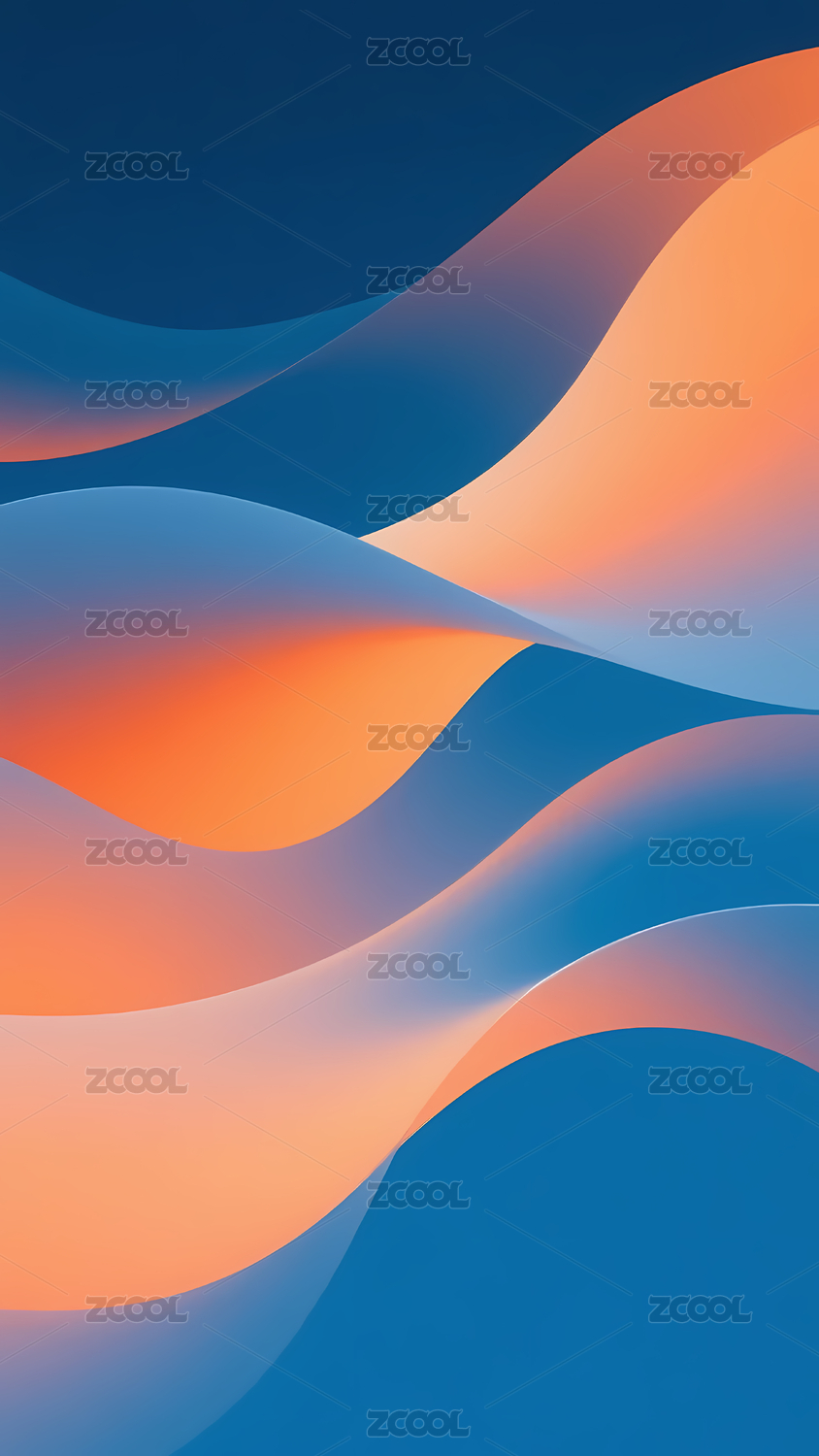 蓝色,曲线,背景,设计,渐变,简洁,艺术,动感,橙色,流畅