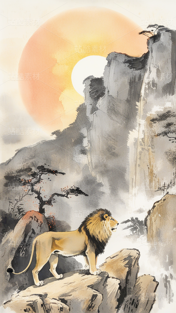 水墨画狮子