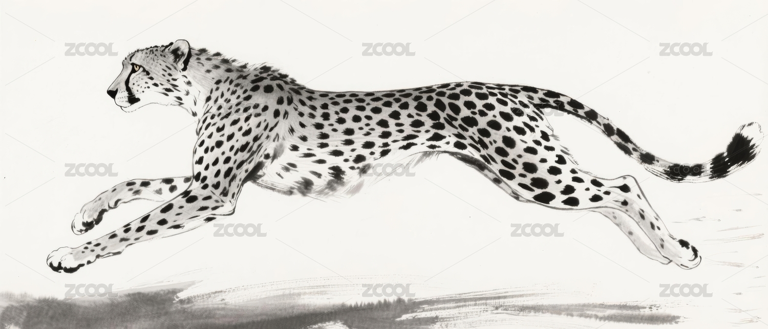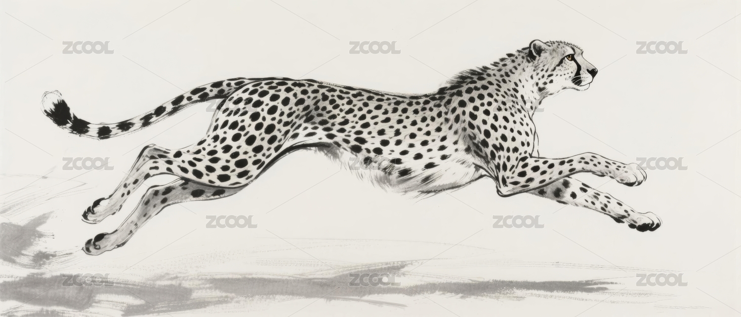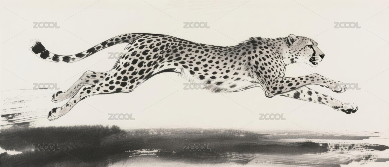 奔跑的黑白豹子插画