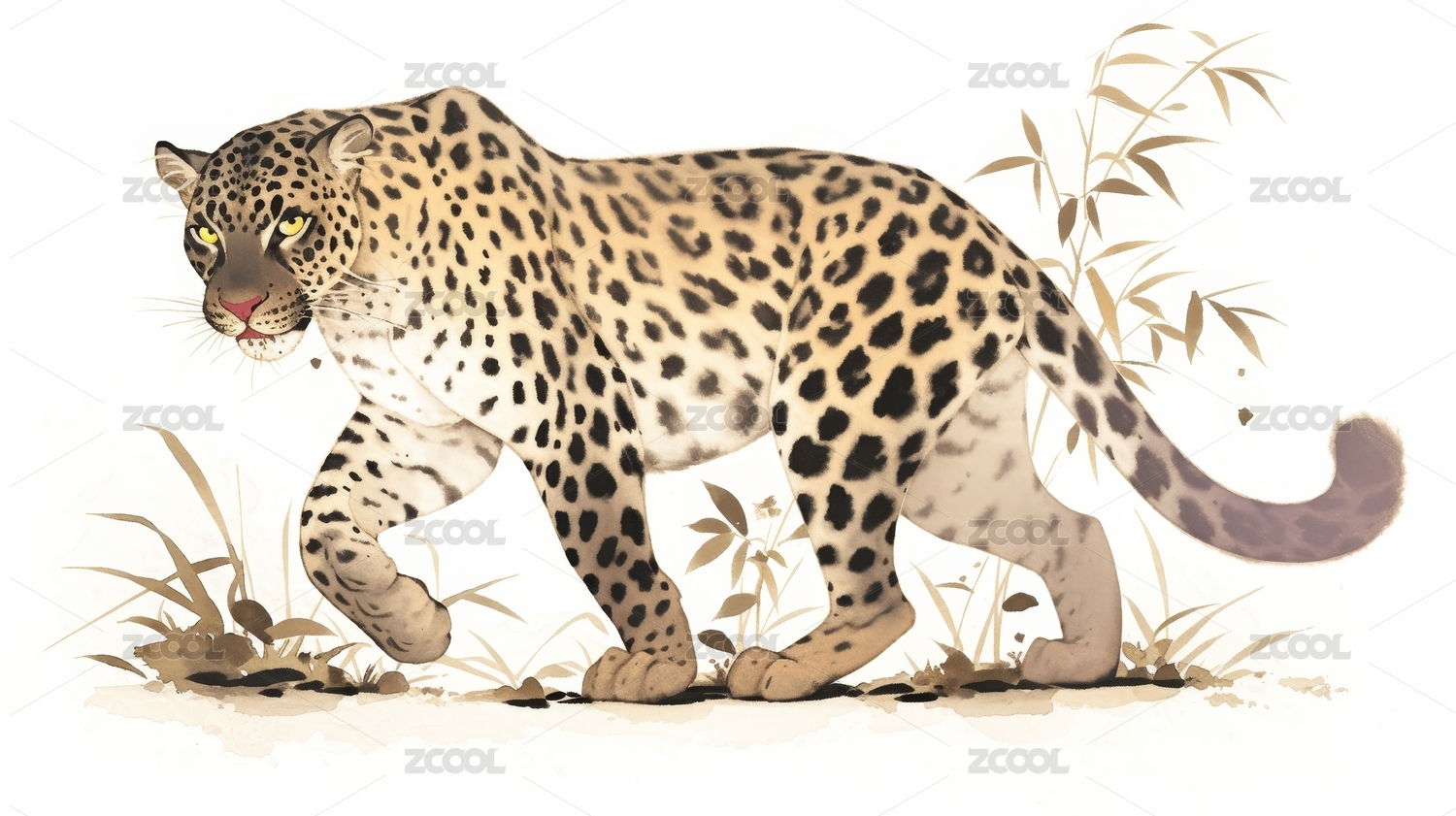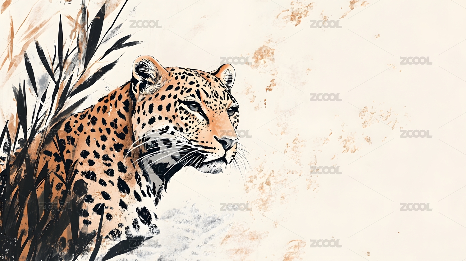 水墨写意丛林豹