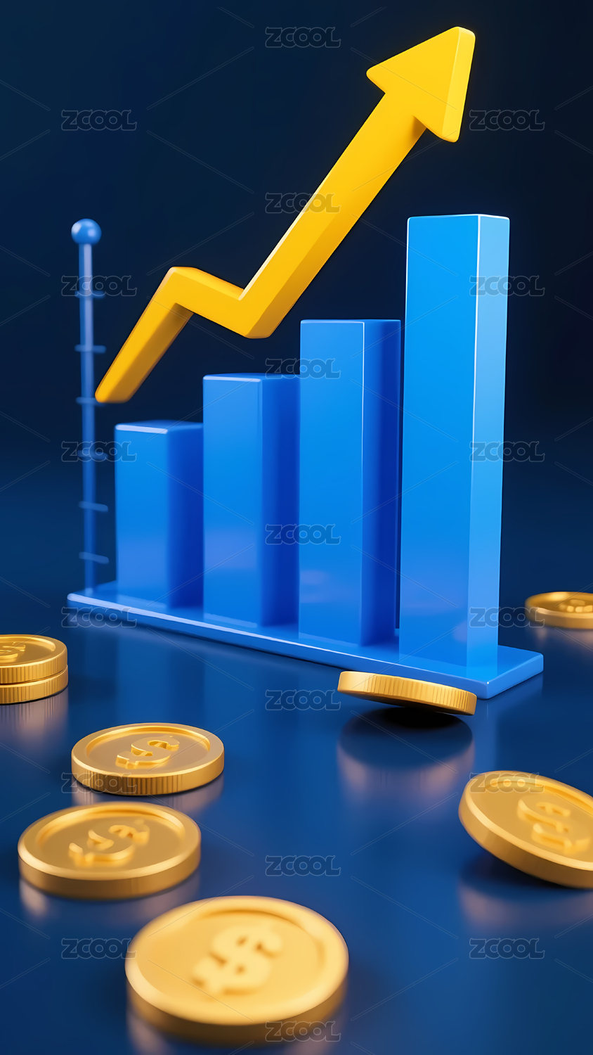蓝色,深蓝,箭头,柱状图,硬币,增长,经济,财务,图表,前景