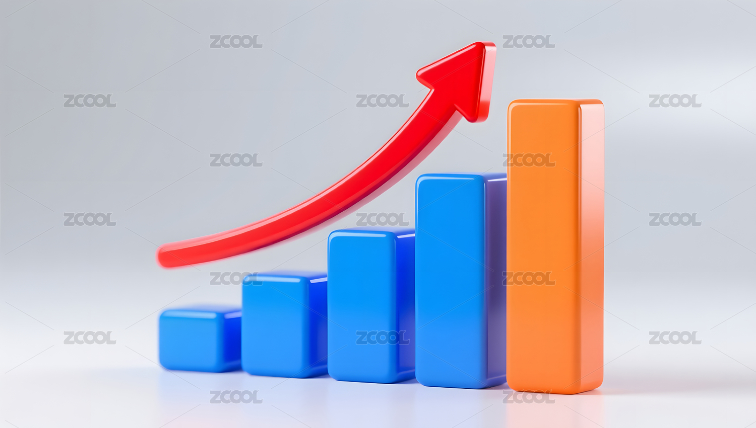 橙色渐变玻璃质感金融柱状图增长箭头背景